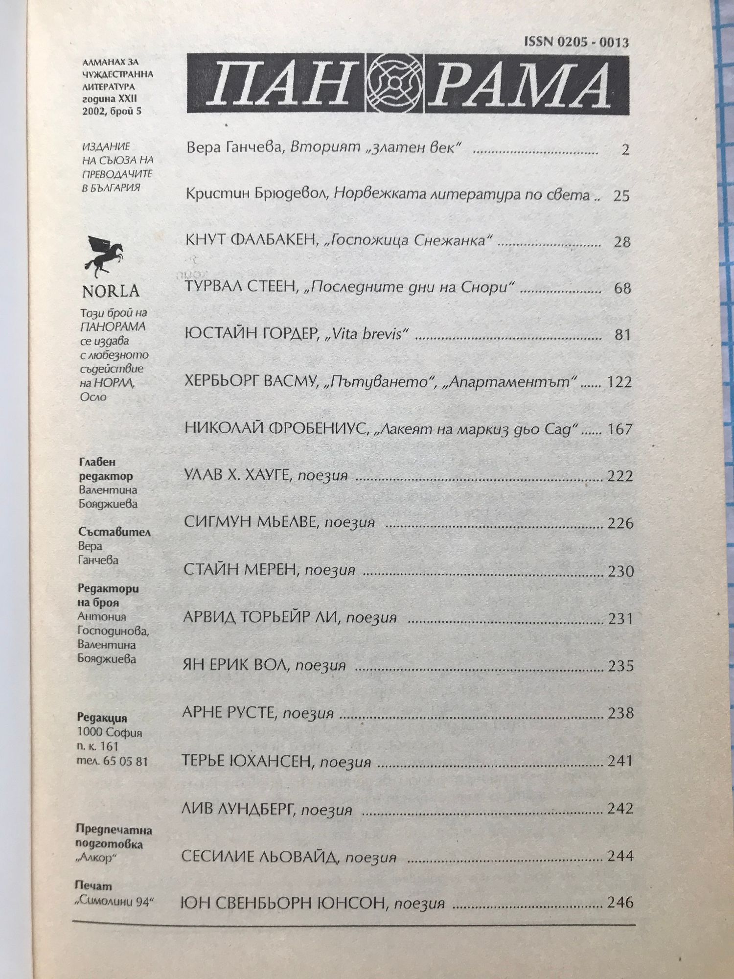 Списание "Панорама" Алманах за чуждестранна литература година XXII 2002, брой 5