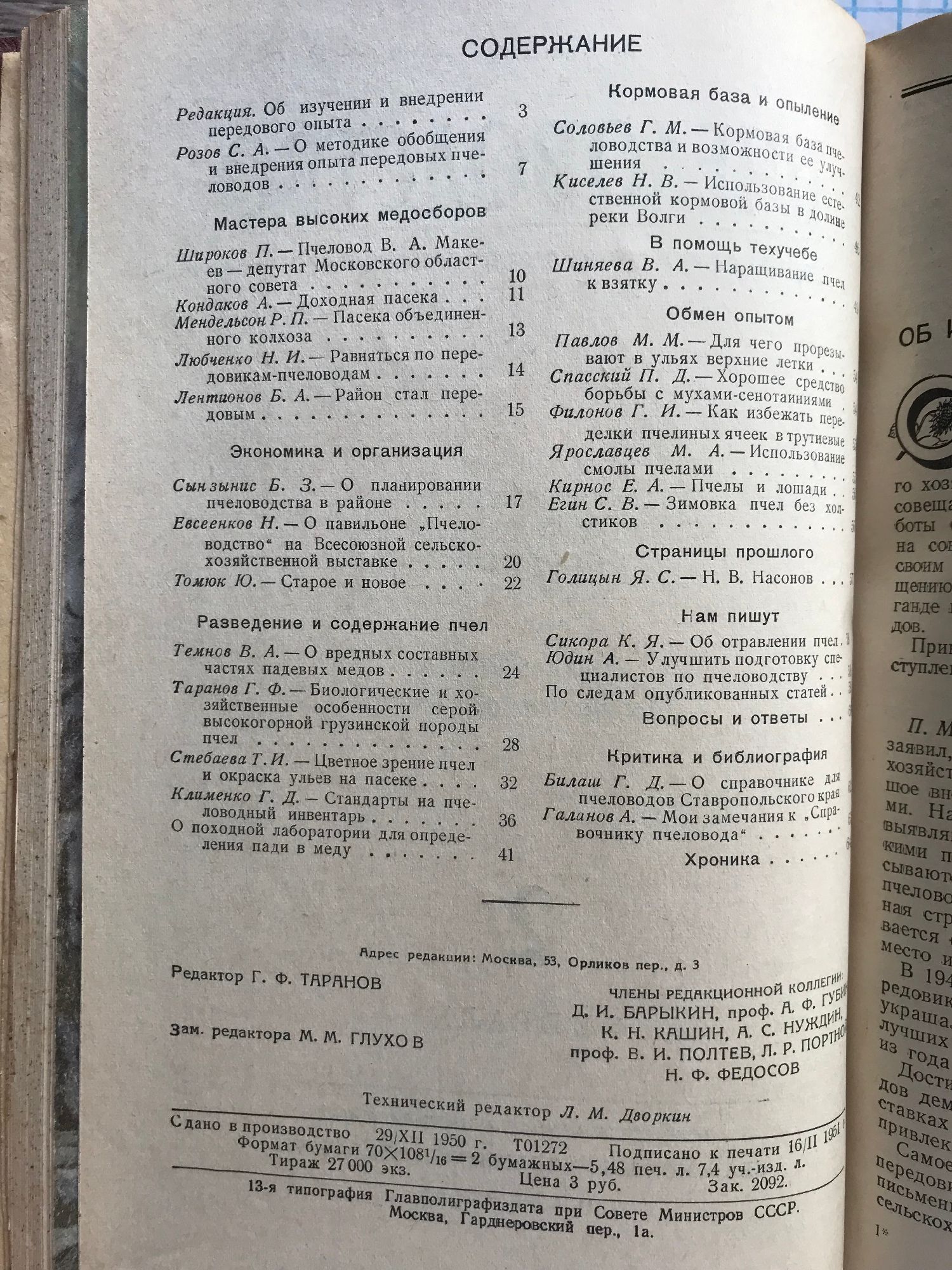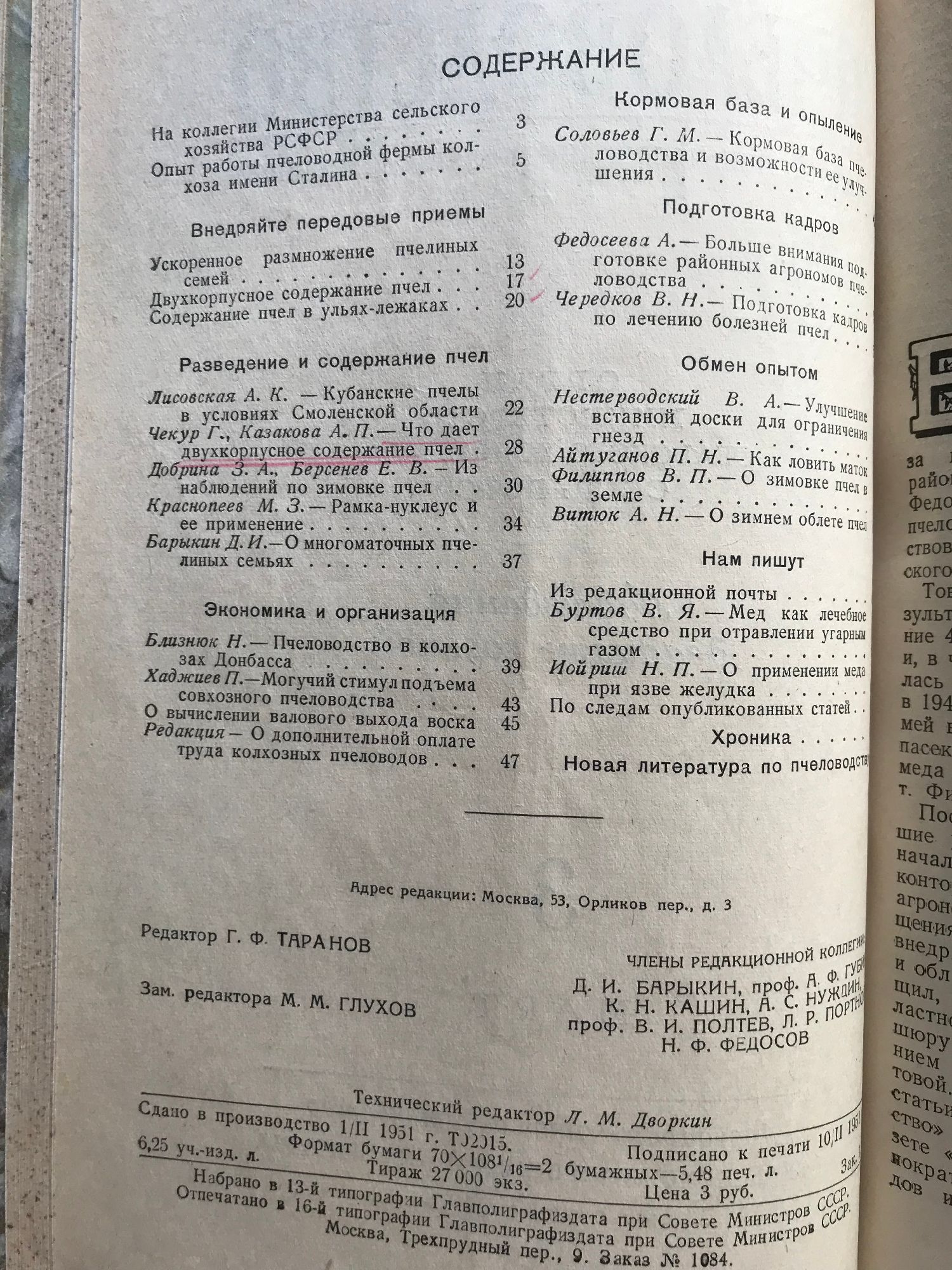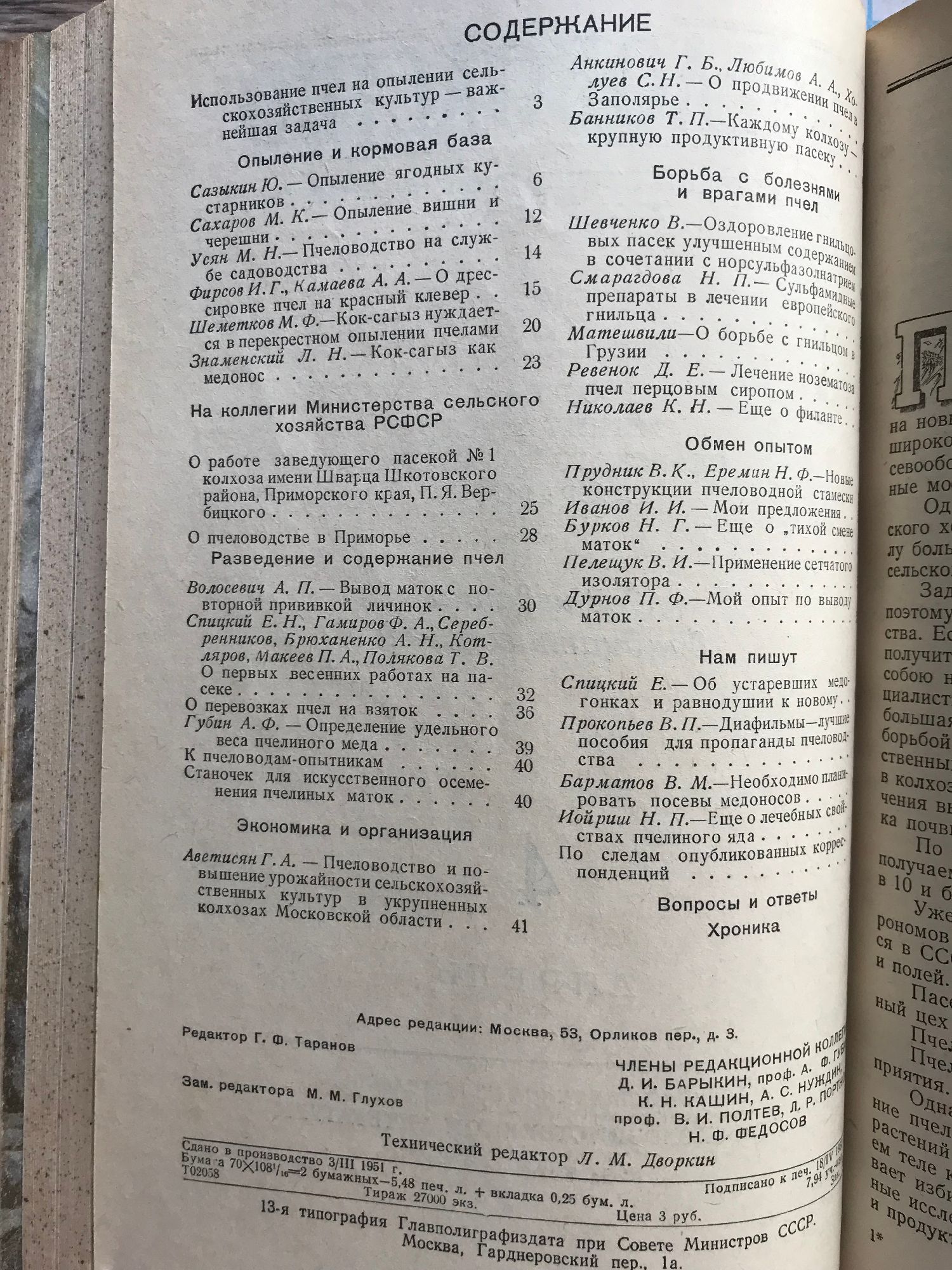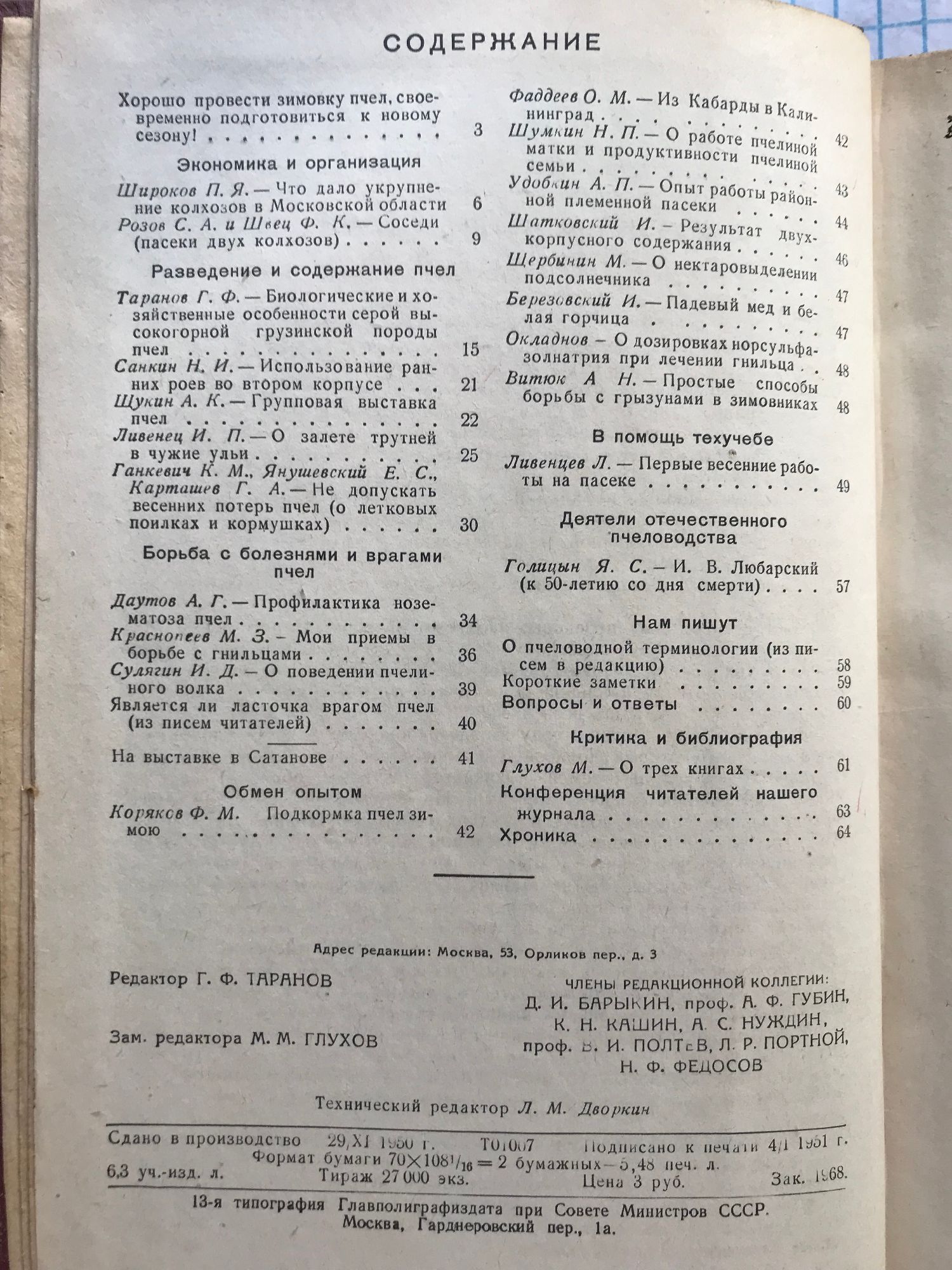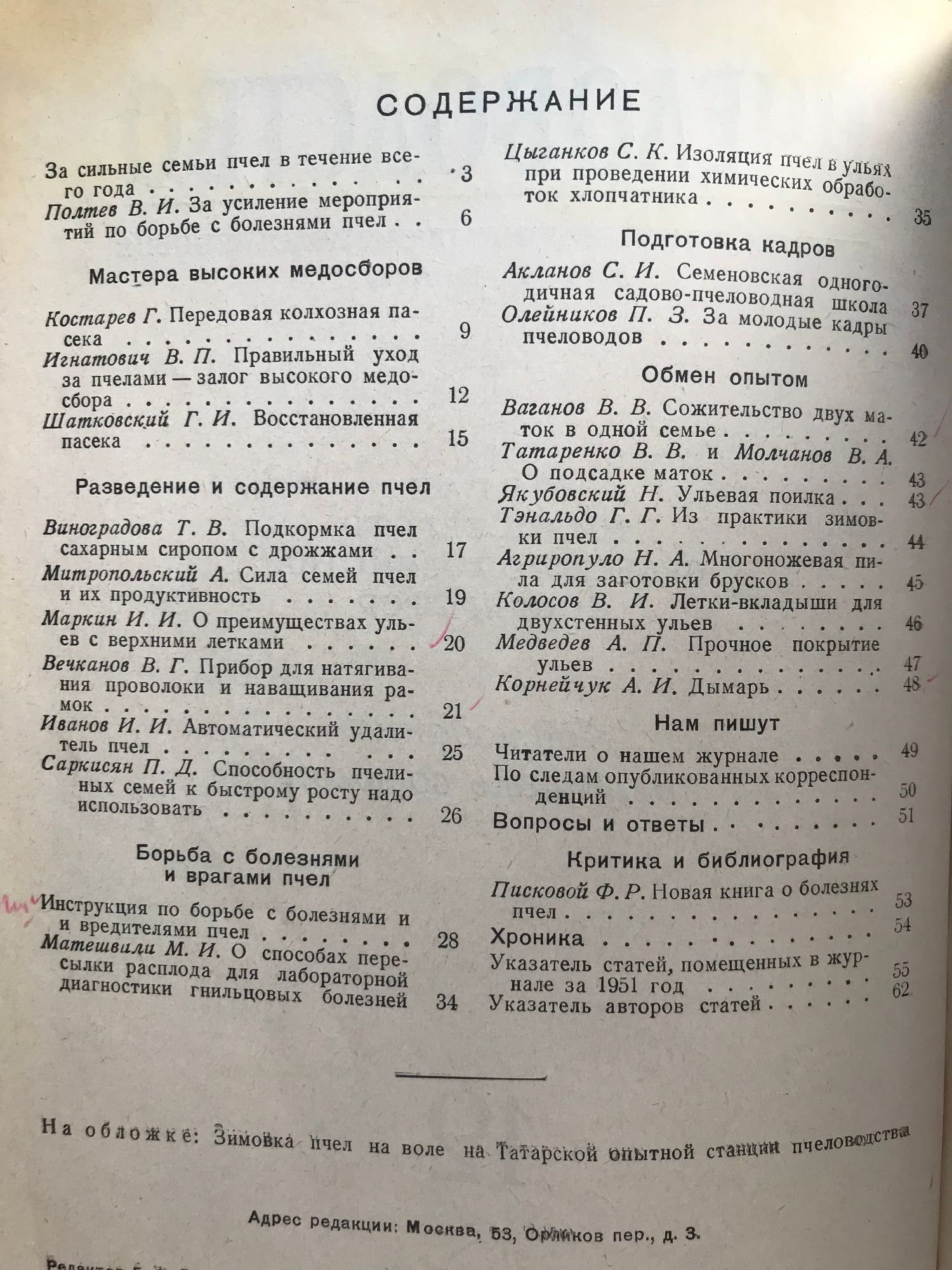 Списание "Пчеловодство" (Пчеларство) - брой 1, 2, 3, 4, 6, 7, 9, 10, 11, 12 / 1951