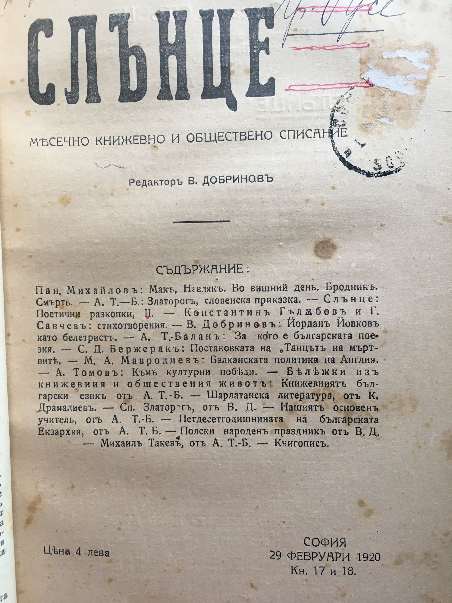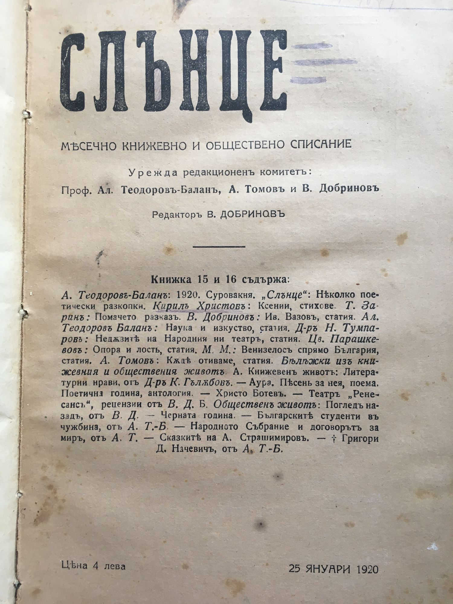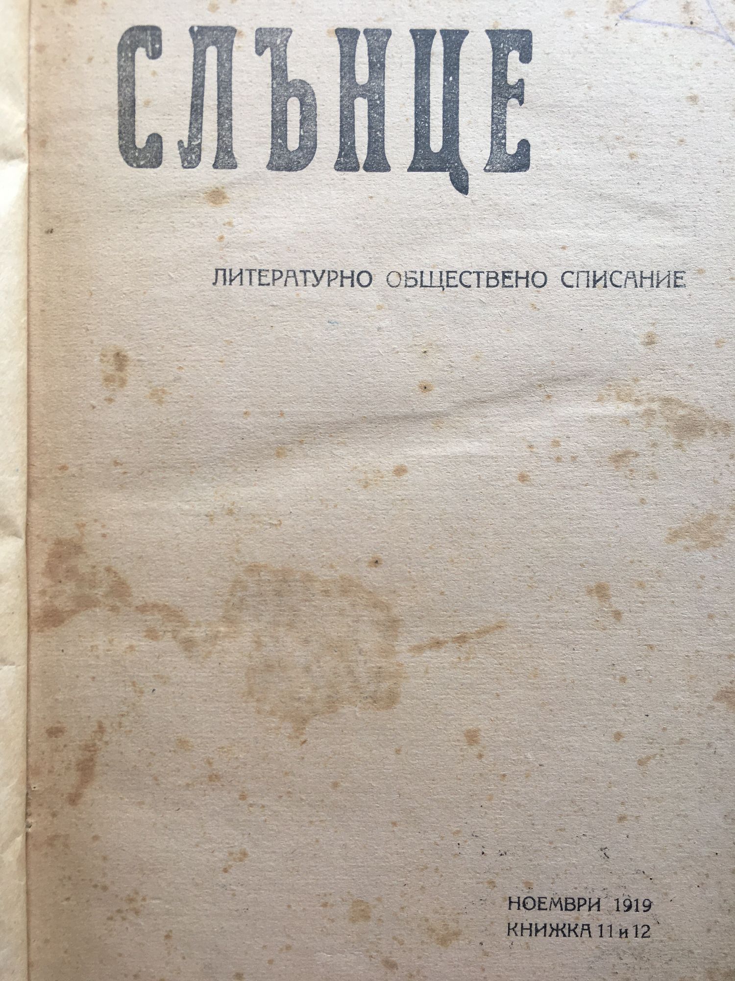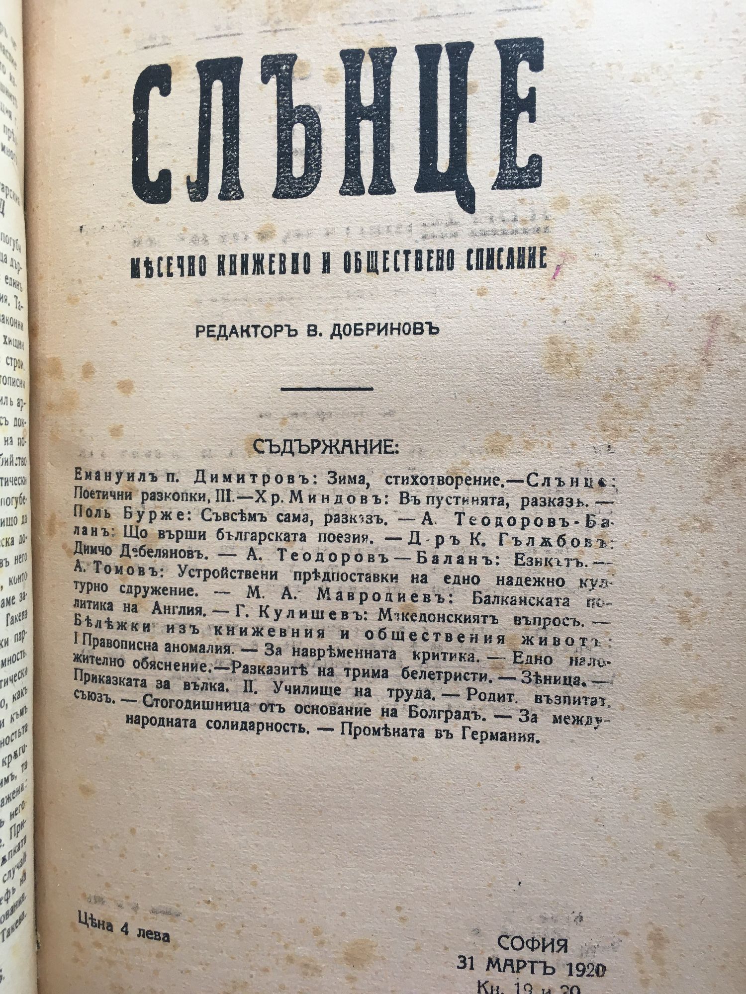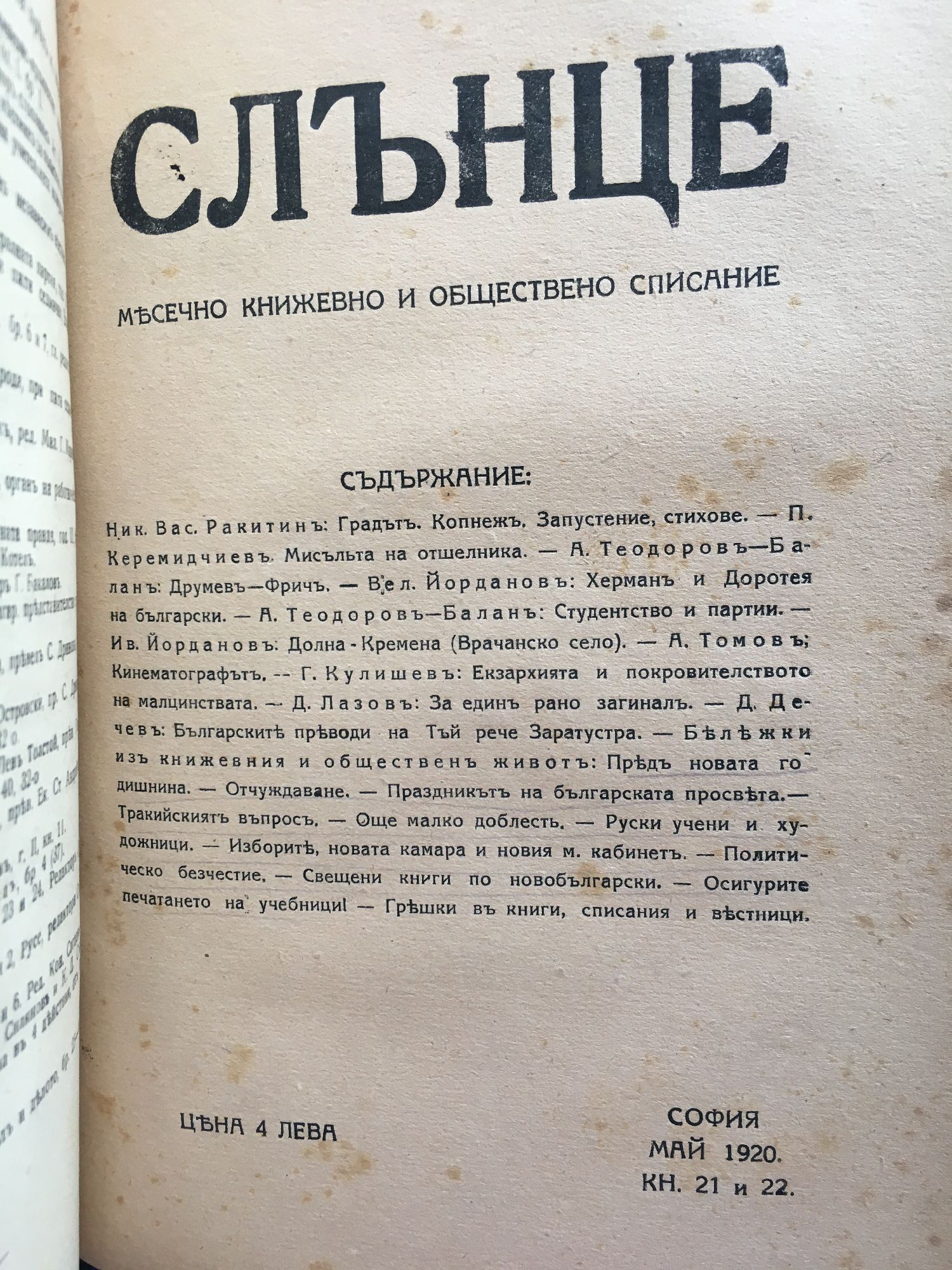 Списание "Слънце" кн. 11 - 22, 1919 - 1920 г.