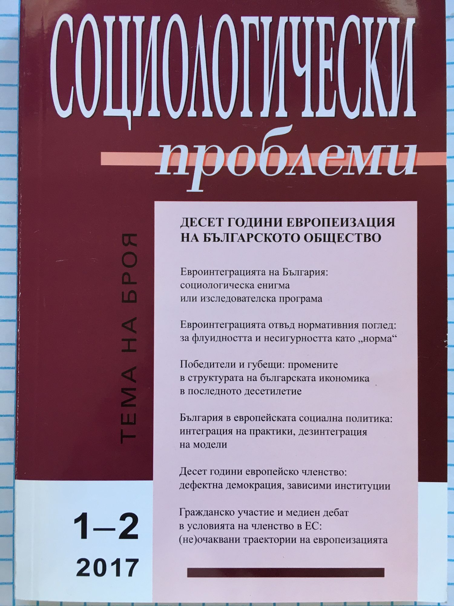 Списание" Социологически проблеми" - брой 1-2, 2017 година