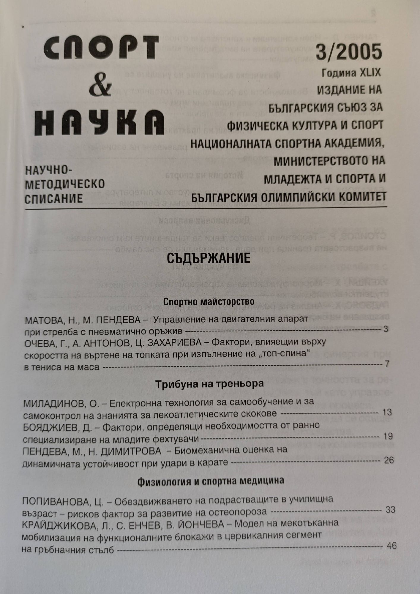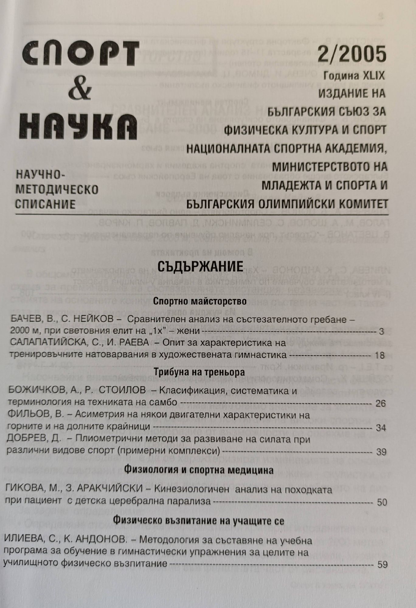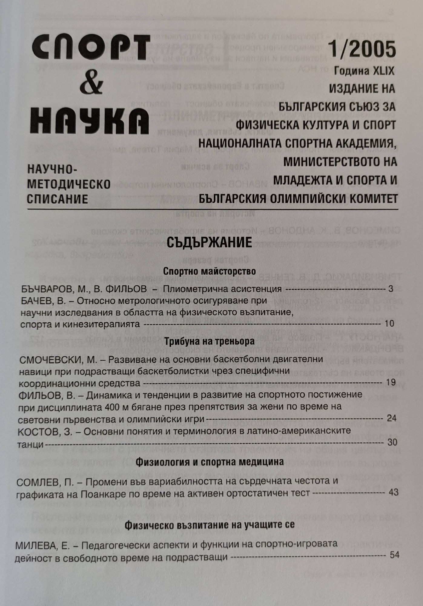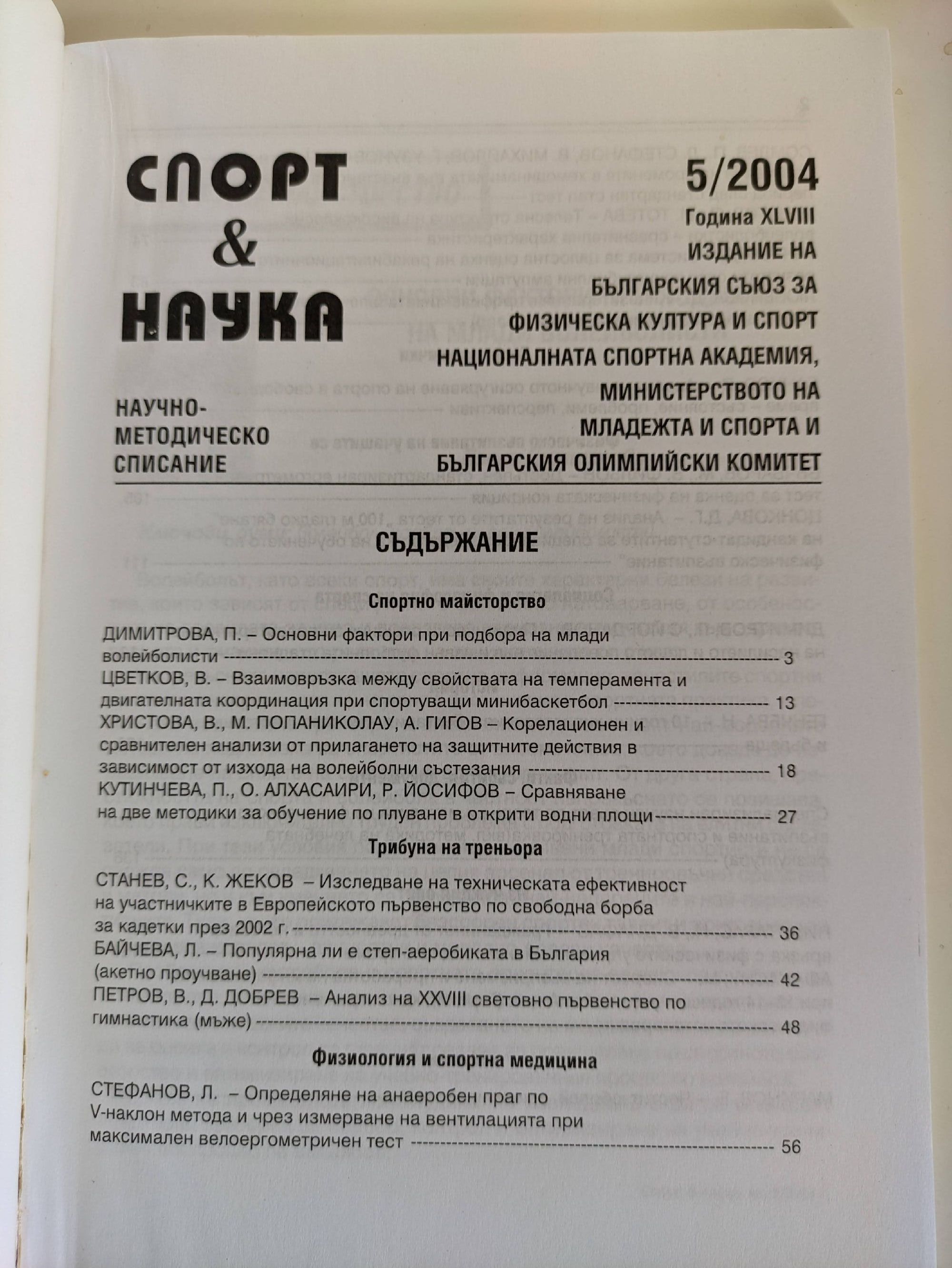 Списание "Спорт & Наука" Година XLIX / XLVIII