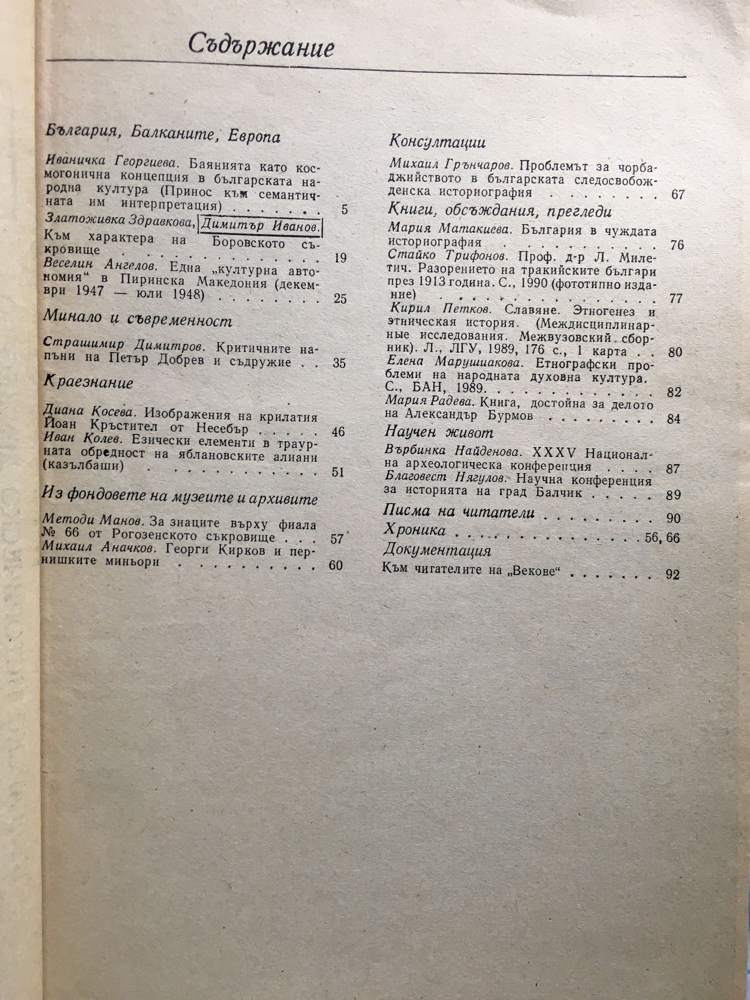 Списание "Векове" - год. XII, книжка 1 - 6 / 1990 г.