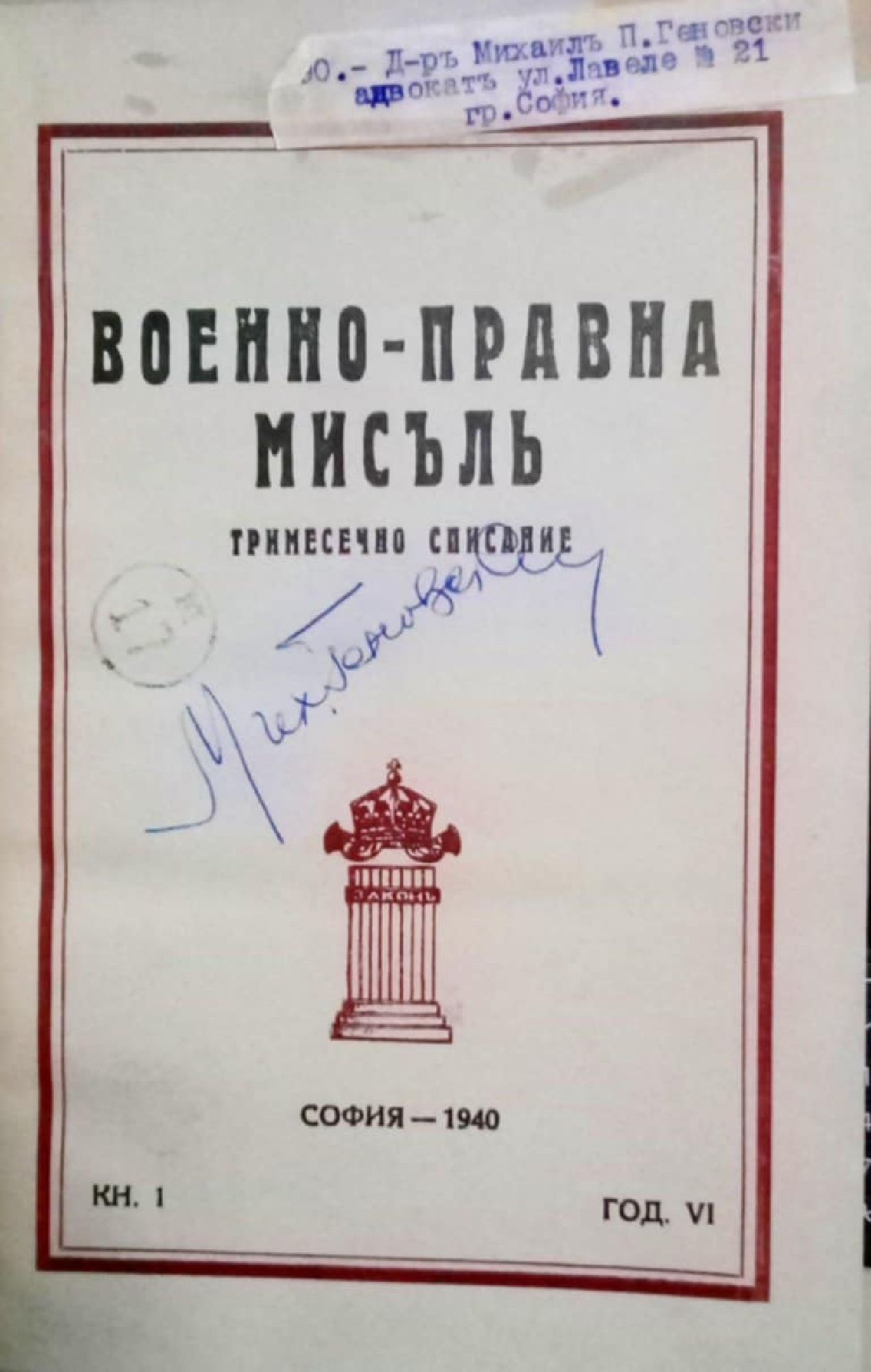 Конволют от 4-те книжки на списание "Военно-правна мисъл" за 1940 г.