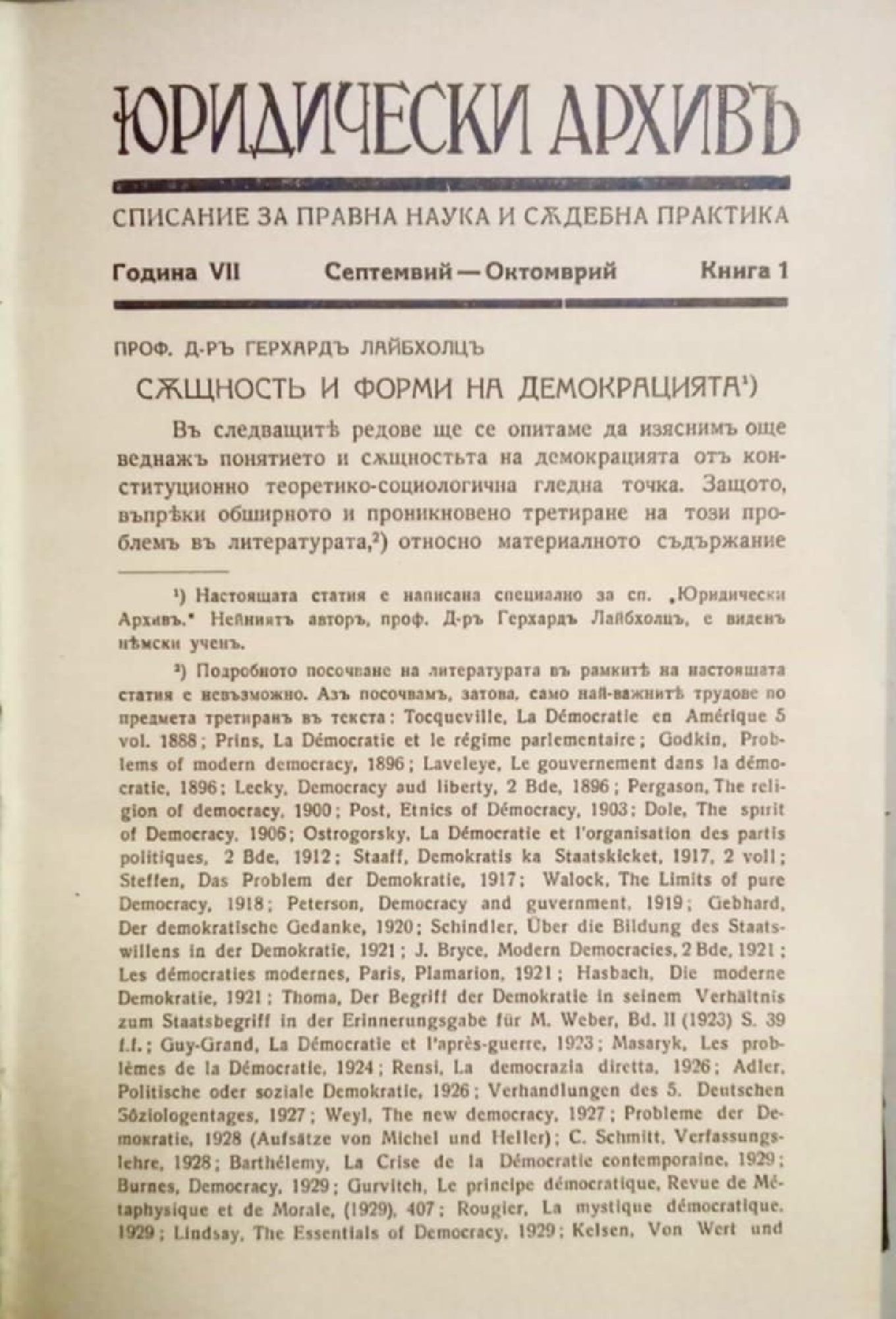 Списание "Юридически архивъ (архив)" - год. 7, кн. 1 - 6, 1935 - 1936