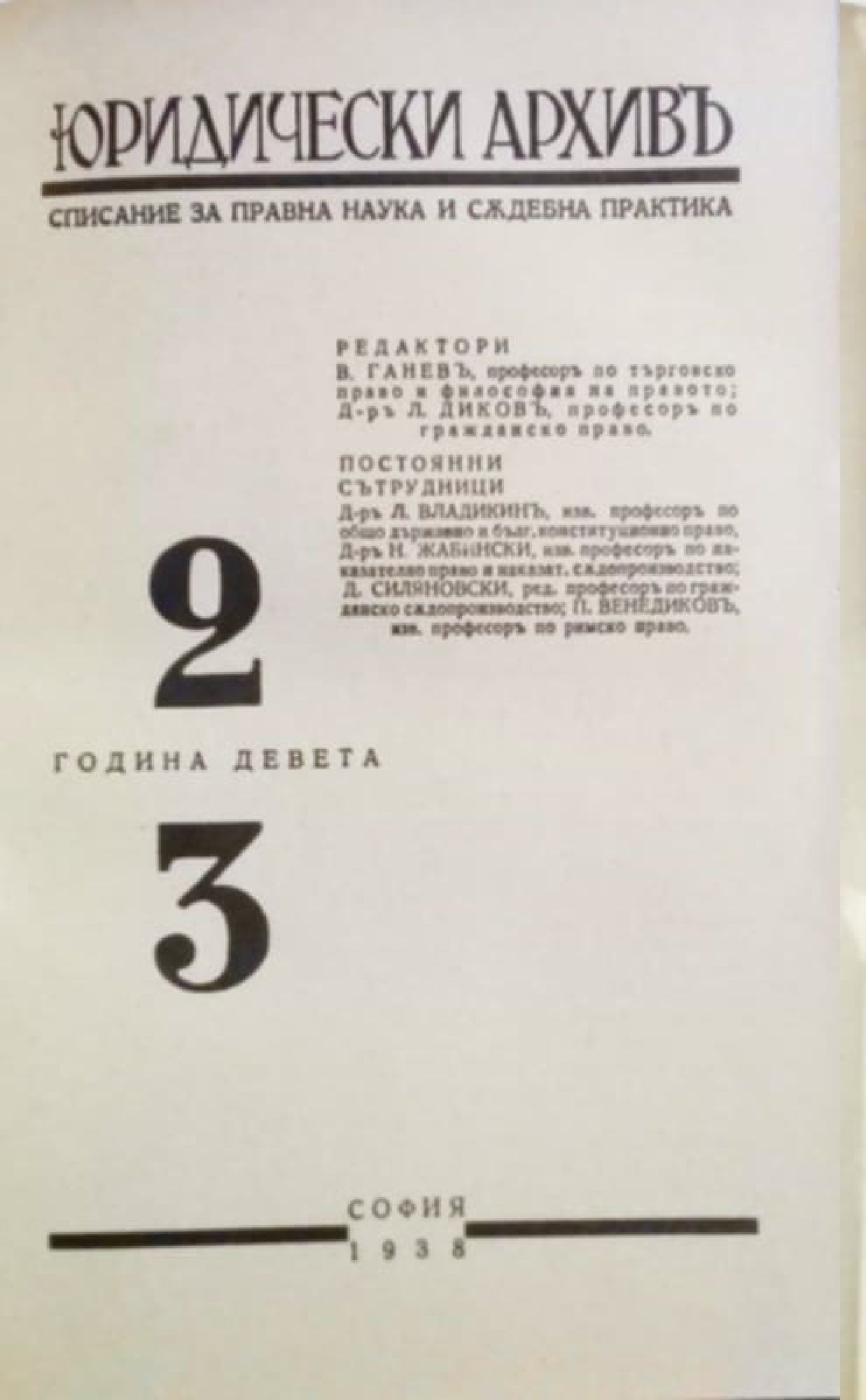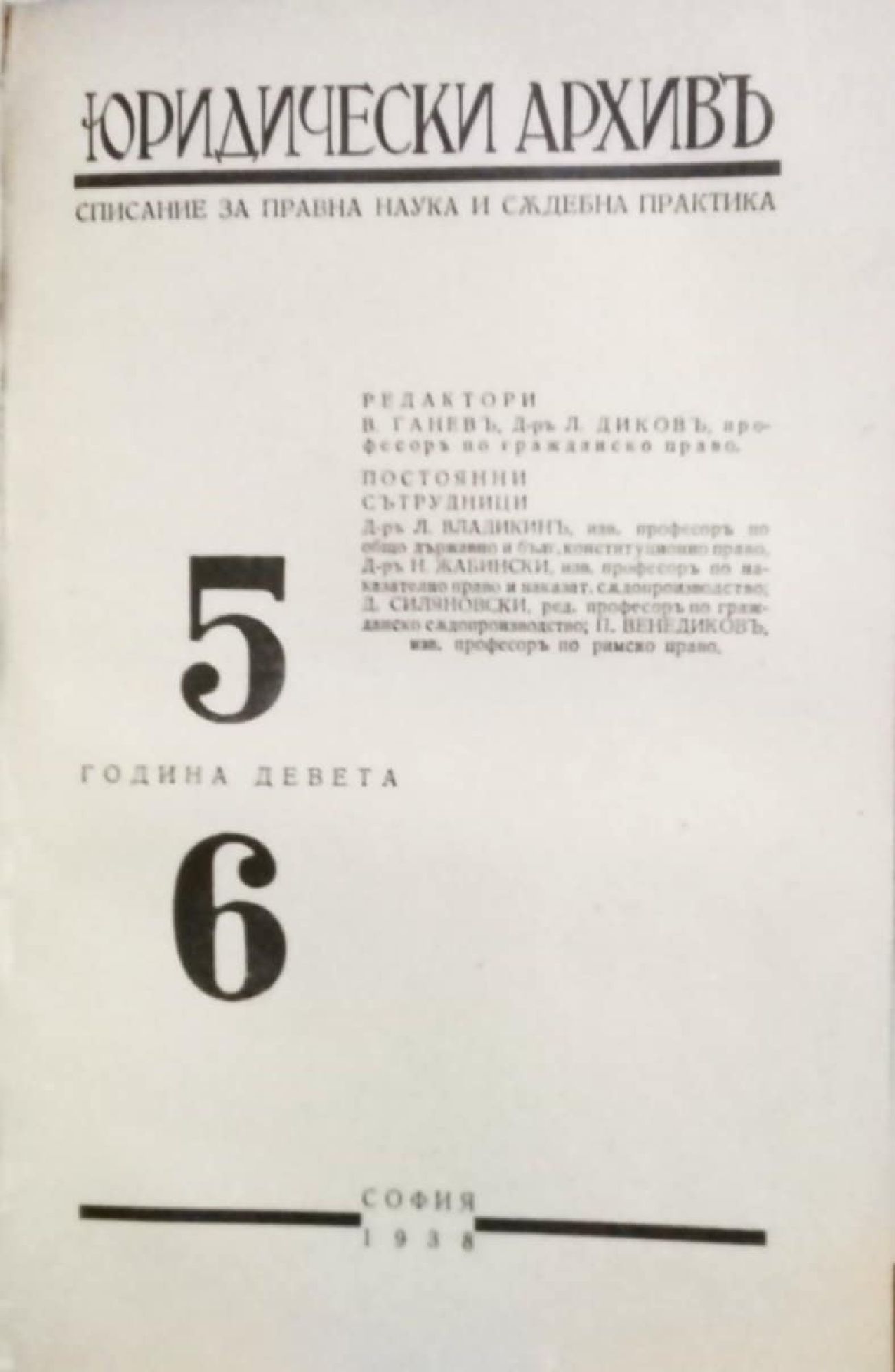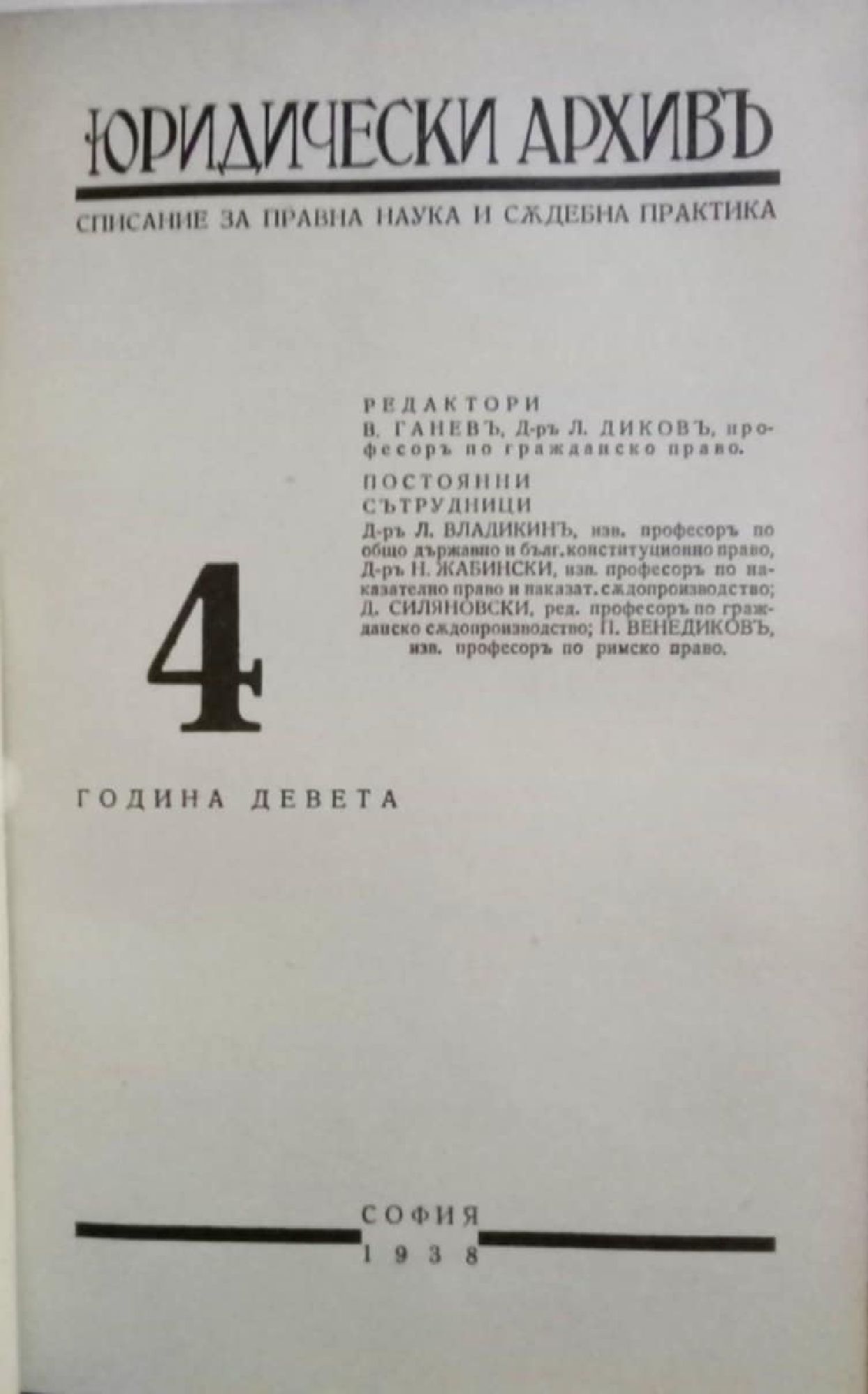Списание "Юридически архивъ (архив)" - год. 9, кн. 1 - 6, 1937 - 1938
