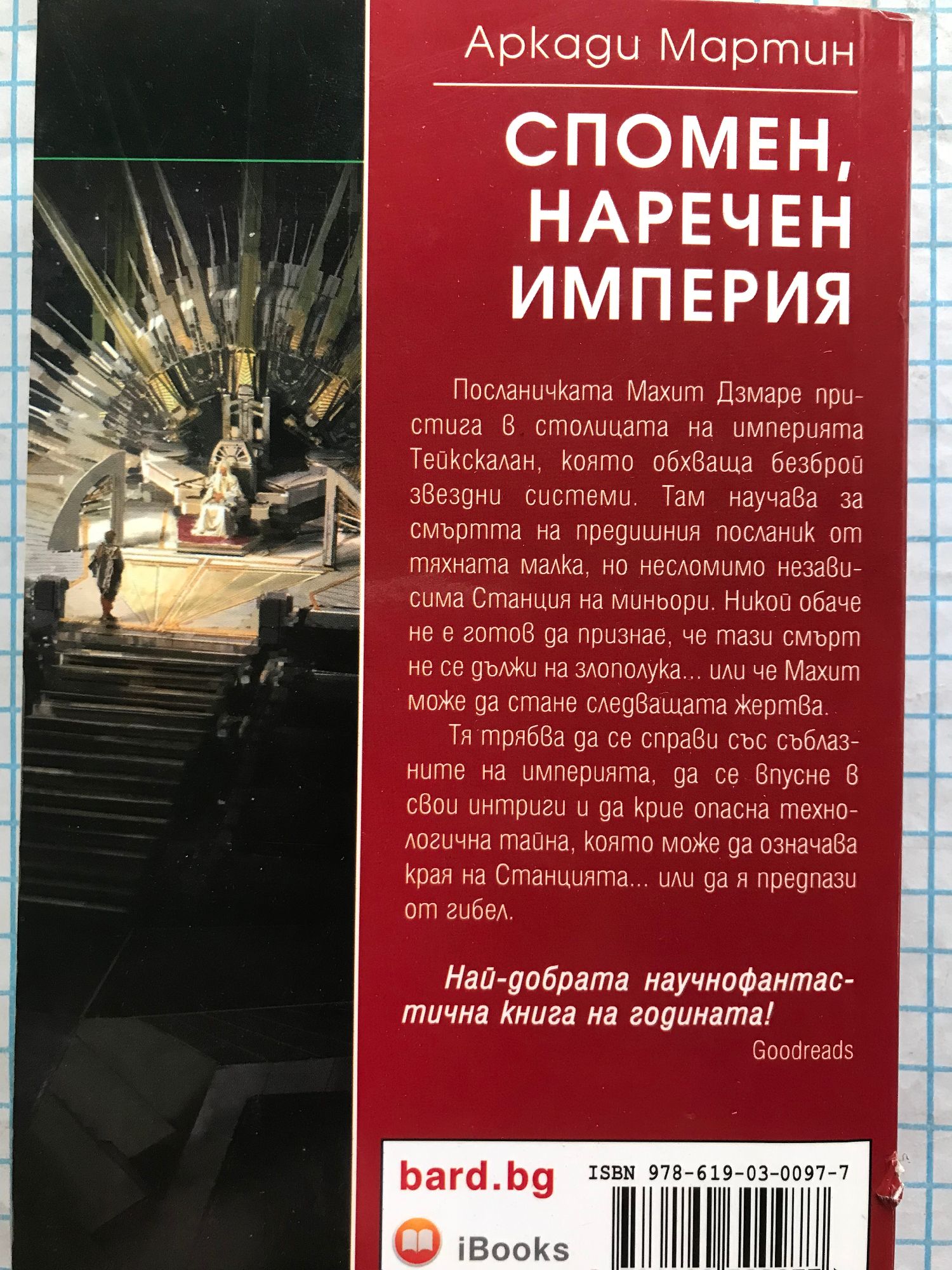 Награда „Хюго“ за най-добър роман, 2020 г. Посланичката Махит Дзмаре пристига в столицата на империята Тейкскалан, която обхваща безброй звездни системи. Там научава за смъртта на предишния посланик от тяхната малка, но несломимо независима Станция на миньори. Никой обаче не е готов да признае, че тази смърт не се дължи на злополука... или че Махит може да стане следващата жертва. Тя трябва да се справи със съблазните на империята, да се впусне в свои интриги и да крие опасна технологична тайна, която може да означава края на Станцията... или да я предпази от гибел. Най-добрата научнофантастична книга на годината! Goodreads