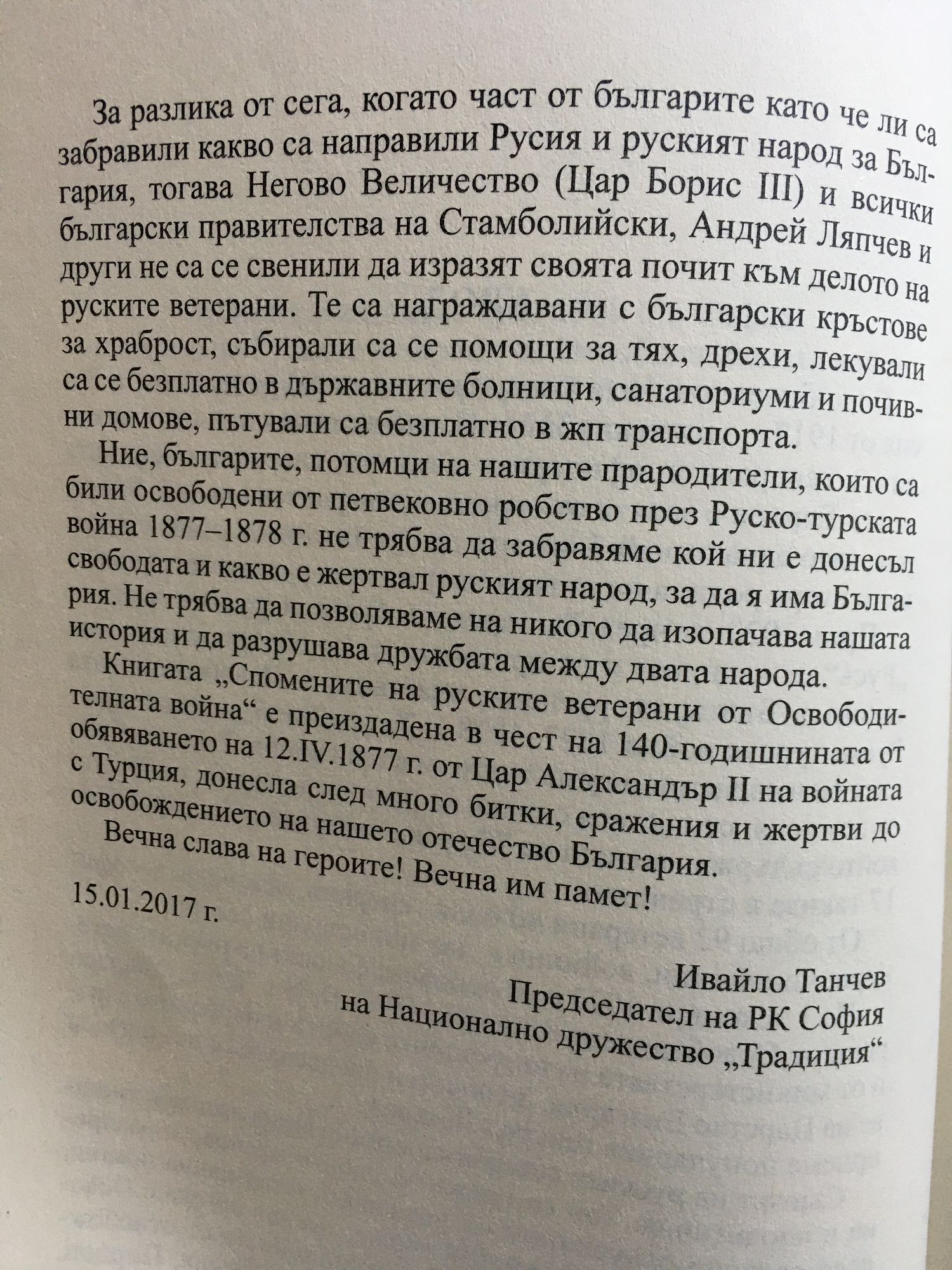 По случай 140-та годишнина от Освободителната Руско-турска война 1877 - 1878 г.