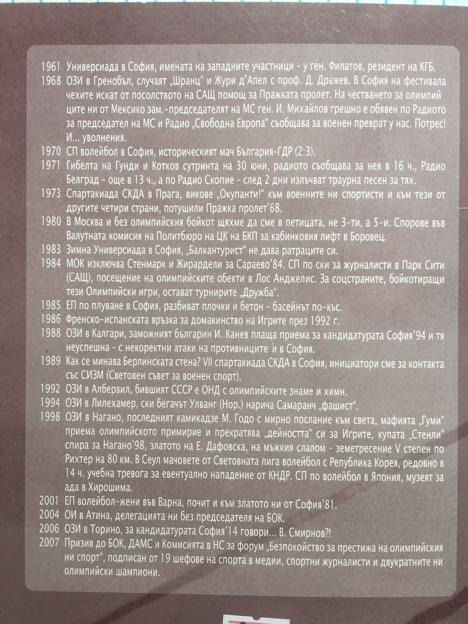 Спортът - постижения, скандали, тайни... 1959 - 2008 г.