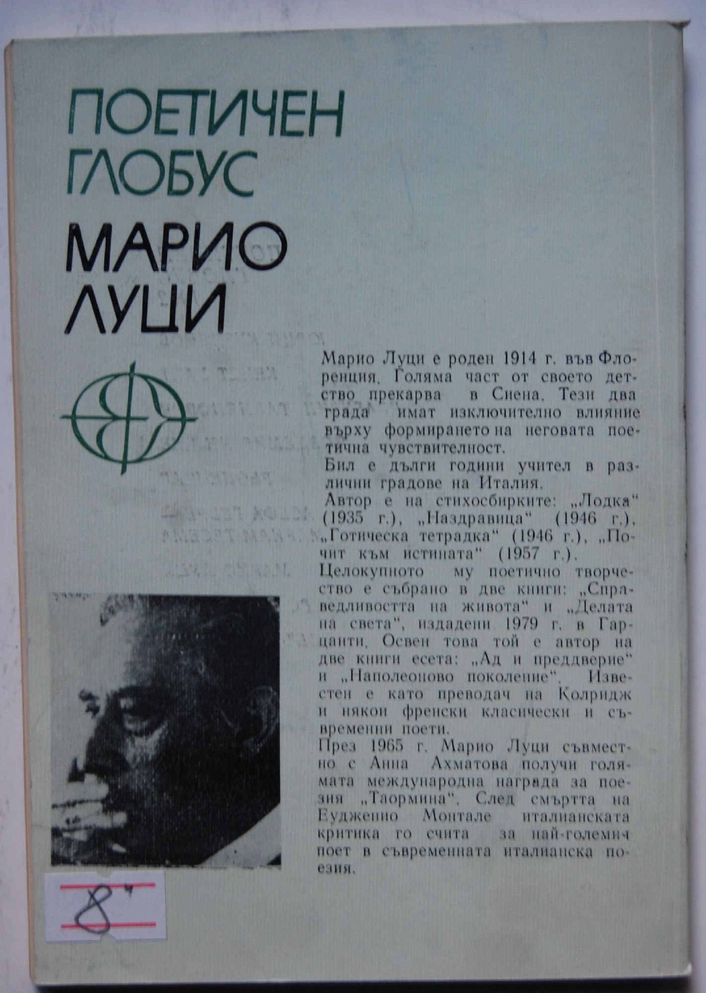 4,09 € / 8,00 лв.Много добро състояние на книжното тяло. С незначителни следи от употреба