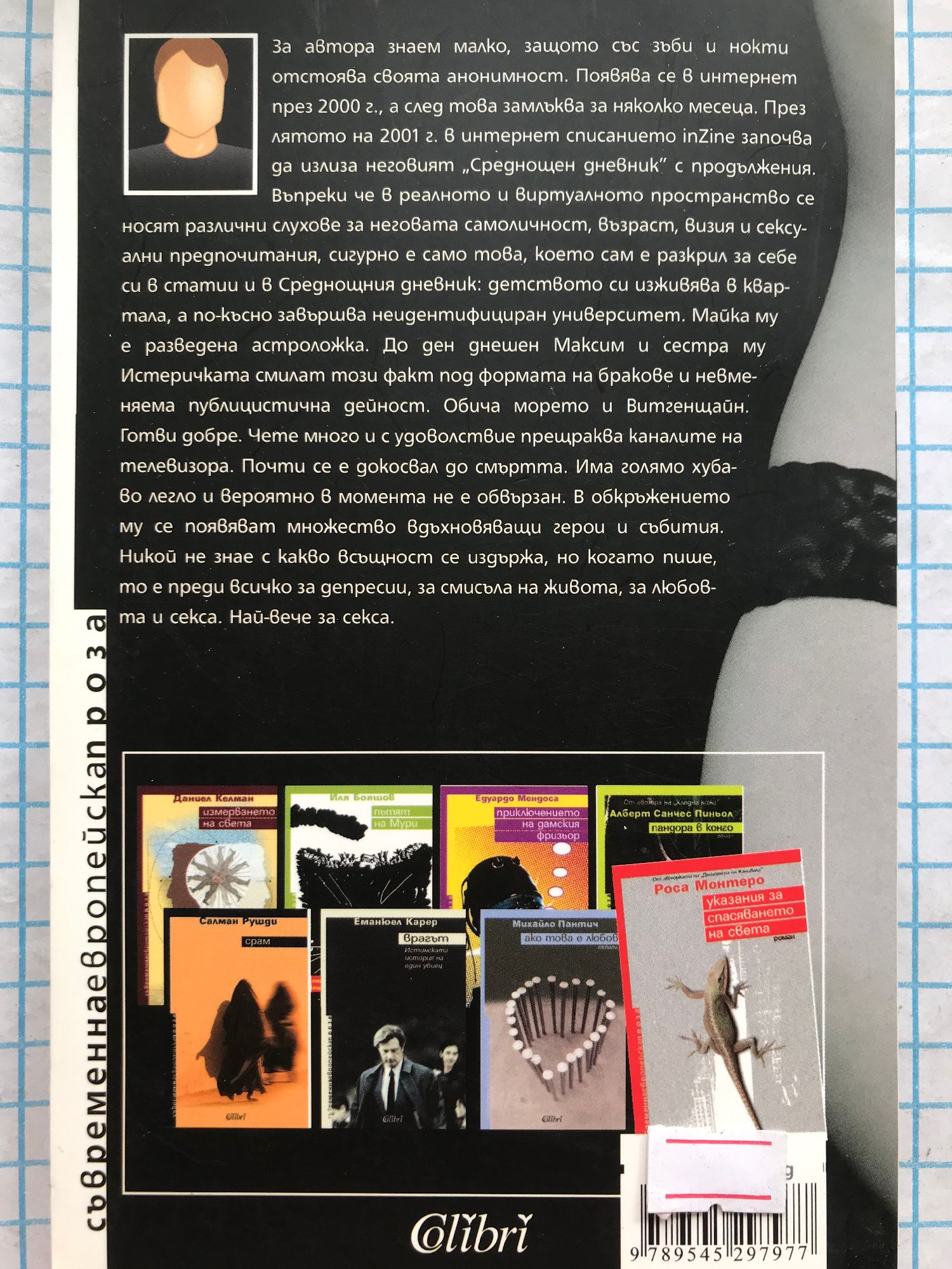 За автора знаем малко, защото със зъби и нокти отстоява своята анонимност. Появява се в интернет през 2000 г., а след това замлъква за няколко месеца. През лятото на 2001 г. в интернет списанието inZine започва да излиза неговият „Среднощен дневник” с продължения. Въпреки че в реалното и виртуалното пространство се носят различни слухове за неговата самоличност, възраст, визия и сексуални предпочитания, сигурно е само това, което сам е разкрил за себе си в статии и в Среднощния дневник: детството си изживява в квартала, а по-късно завършва неидентифициран университет. Майка му е разведена астроложка. До ден днешен Максим и сестра му Истеричката смилат този факт под формата на бракове и невменяема публицистична дейност. Обича морето и Витгенщайн. Готви добре. Чете много и с удоволствие прещраква каналите на телевизора. Почти се е докосвал до смъртта. Има голямо хубаво легло и вероятно в момента не е обвързан. В обкръжението му се появяват множество вдъхновяващи герои и събития. Никой не знае с какво всъщност се издържа, но когато пише, то е преди всичко за депресии, за смисъла на живота, за любовта и секса. Най-вече за секса.