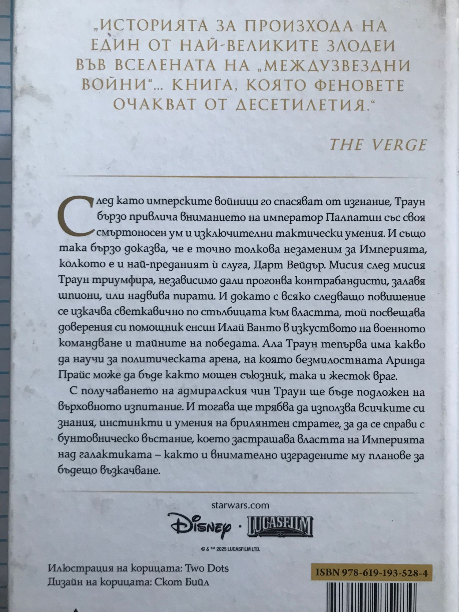 След като имперските войници го спасяват от изгнание, Траун бързо привлича вниманието на император Палпатин със своя смъртоносен ум и изключителни тактически умения. И също толкова бързо доказва, че е точно толкова незаменим за Империята, колкото е и най-преданият ѝ слуга, Дарт Вейдър. Мисия след мисия Траун триумфира, независимо дали прогонва контрабандисти, залавя шпиони или надвива пирати. И докато с всяко следващо повишение се изкачва бързо по стълбицата към властта, той посвещава доверения си помощник Илай Ванто в изкуството на военното командване и тайните на победата. Ала Траун тепърва има какво да научи за политическата арена, на която безмилостната Аринда Прайс може да бъде както мощен съюзник, така и жесток враг. С получаването на адмиралския чин Траун ще бъде подложен на върховното изпитание. И тогава ще трябва да използва всичките си знания, инстинкти и умения на брилянтен стратег, за да се изправи срещу бунтовническото въстание, което застрашава властта на Империята над галактиката – както и внимателно изградените му планове за бъдещо възкачване...