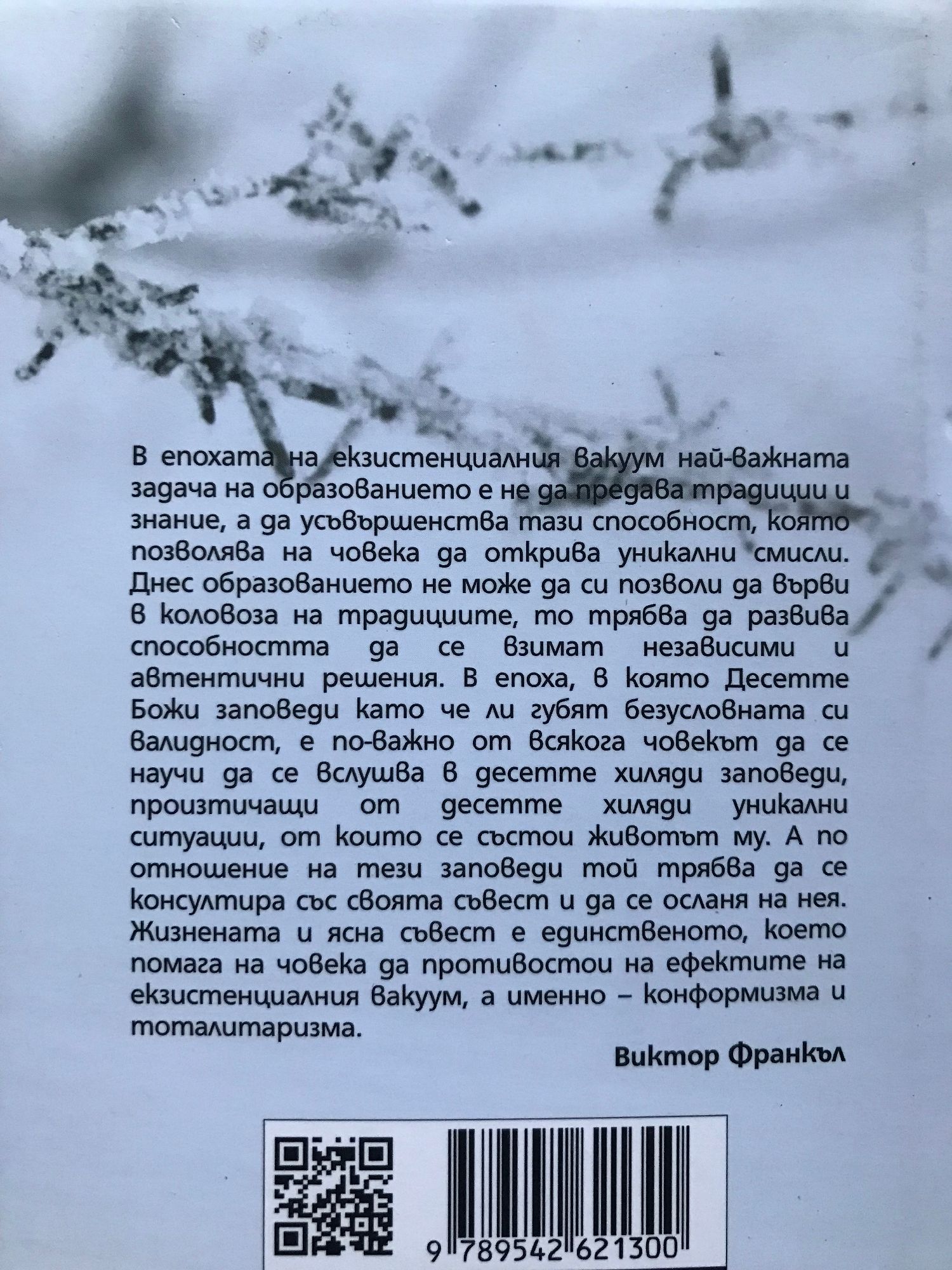 В епохата на екзистенциалния вакуум най-важната задача на образованието е не да предава традиции и знание, а да усъвършенства тази способност, която позволява на човека да открива уникални смисли. Днес образованието не може да си позволи да върви в коловоза на традициите, то трябва да развива способността да се взимат независими и автентични решения. В епоха, в която Десетте Божи заповеди като че ли губят безусловната си валидност, е по-важно от всякога човекът да се научи да се вслушва в десетте хиляди заповеди, произтичащи от десетте хиляди уникални ситуации, от които се състои животът му. А по отношение на тези заповеди той трябва да се консултира със своята съвест и да се осланя на нея. Жизнената и ясна съвест е единственото, което помага на човека да противостои на ефектите на екзистенциалния вакуум, а именно – конформизма и тоталитаризма.