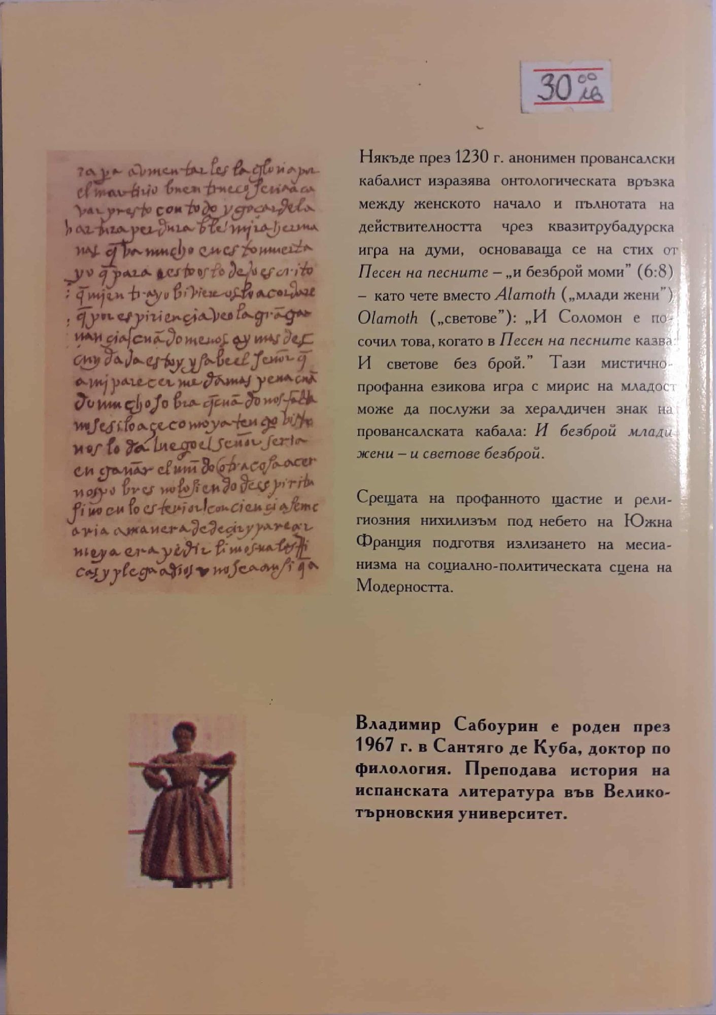 15,34 € / 30,00 лв.Много добро състояние на книжното тяло. Почти отлично. С минимални следи от употреба; отлепен в долния край първи лист. Имена на предишен притежател