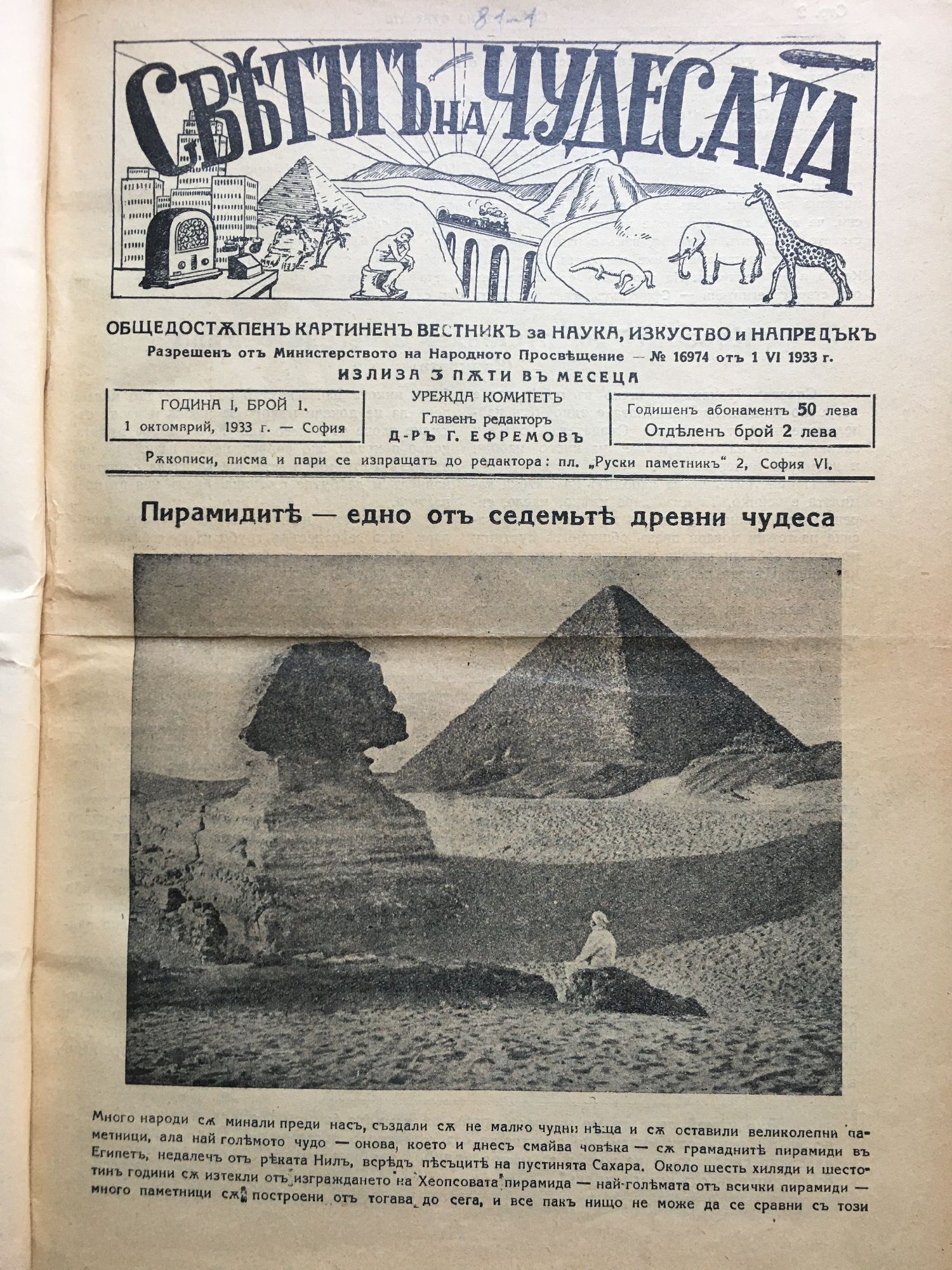 Светътъ на чудесата - год. 1, бр. 1. 1 октомврий 1913 г. / Светът на чудесата - год. 1, бр. 1. 1 октомврий 1913 г.