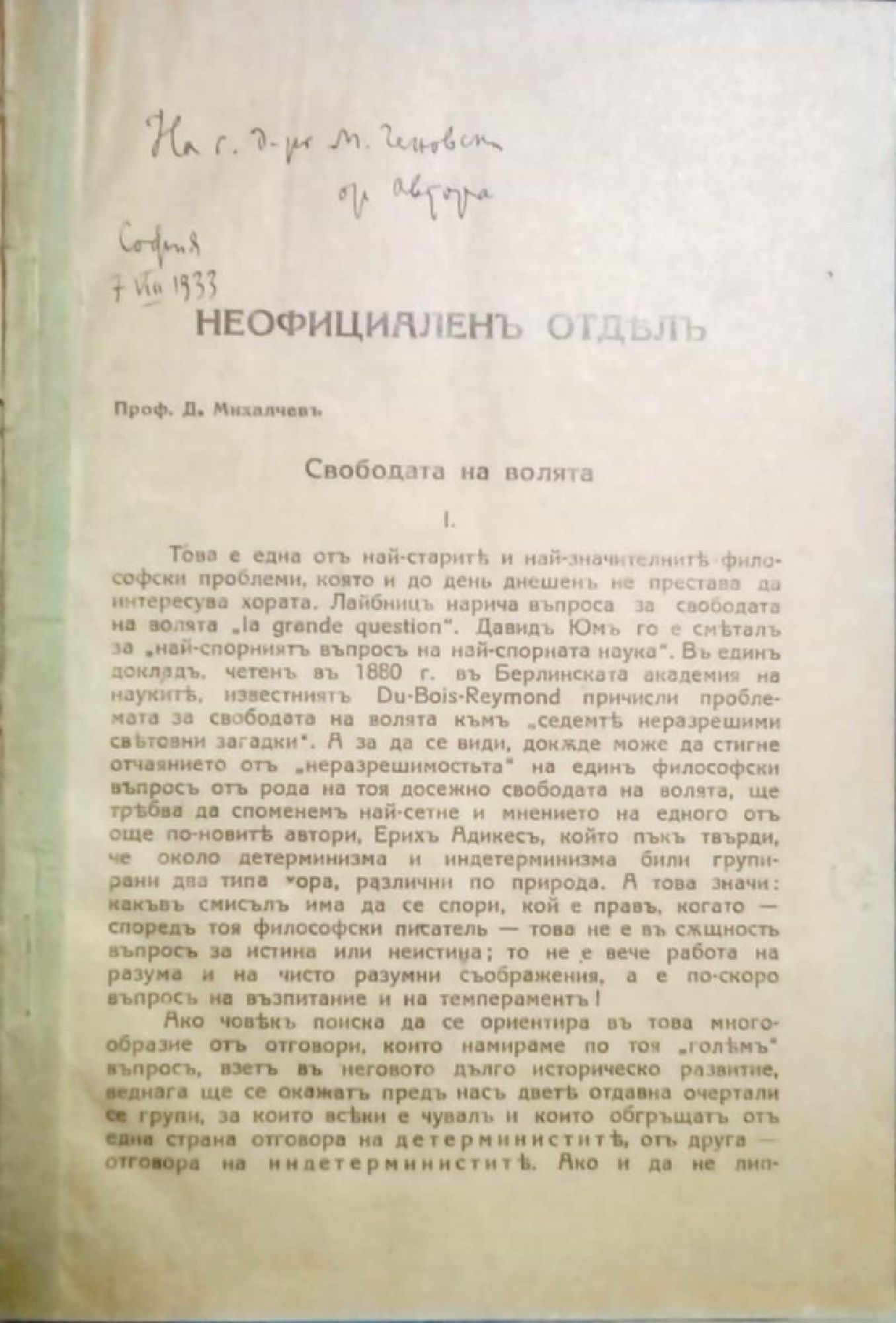 Отделен отпечатък от Училищен преглед. Месечно списание, Год. 32, кн. 1. Неофициаленъ отделъ