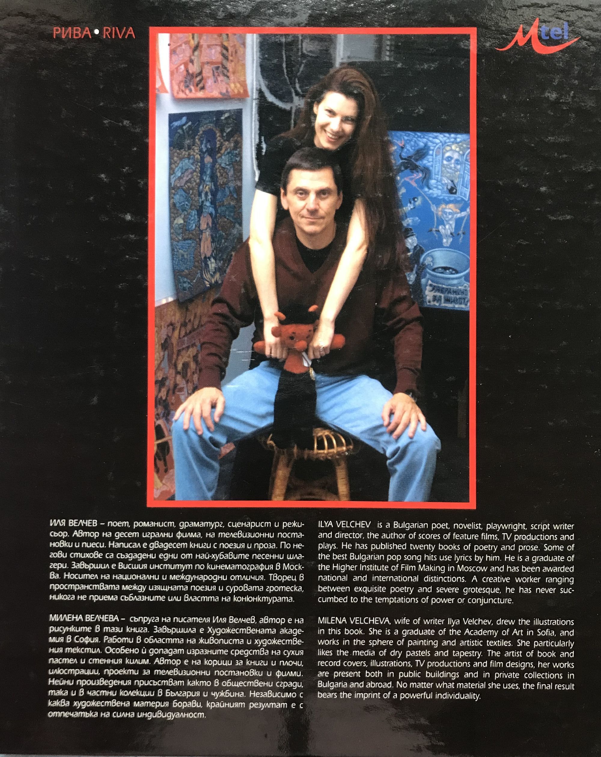 ИЛЯ ВЕЛЧЕВ - поет, романист, драматург и режисьор. Автор на десет игрални филма, на телевизионни постановки и пиеси. Написал е двадесет книги с поезия и проза. По негови стихове са създадени едни от най-хубавите песенни шлагери. Завършил е Висшия институт по кинематография В Москва. Носител е на национални и международни отличия. Творец в пространствата между изящнama поезия и cypoвaтa гротеска, никога не приема съблазните или властта на конюнктурата. МИЛЕНА ВЕЛЧЕВА - съпруга на писателя Иля Велчев, автор е на рисунките в тази книга. Завършила е Художествената академия в София. Работи в областта на живописта и художествения текстил. Особено й допадат изразните средства на сухия пастел и стенния килим. Автор е на корици за книги и плочи, илюстрации, проекти за телевизионни постановки и филми. Нейни произведения присъстват както в обществени сгради, така и в частни колекции в България и чужбина. Независимо с каква художествена материя борави, крайният резултат е с отпечатъка на силна индивидуалност.