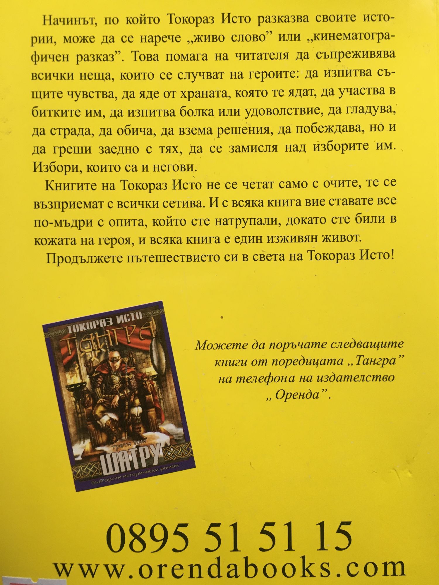 Начинът, по който Токораз Исто разказва своите истории, може да се нарече „живо слово” или „кинематографичен разказ”. Това помага на читателя да съпреживява всичко неща, които се случват на героите: да изпитва същите чувства, да яде от храната, с която се хранят, да участва в битките им, да изпитва болка или удоволствие, да гладува, да страда, да обича, да взема решения, да побеждава, но и да греши заедно с тях, да се замисля над изборите им. Изборите, които са и негови. Книгите на Токораз Исто не се четат само с очите, те се възприемат с всички сетива. И с всяка книга вие ставате все по-мъдри с опита, който сте натрупали, докато сте били в кожата на героя, и всяка книга е един изживян живот.