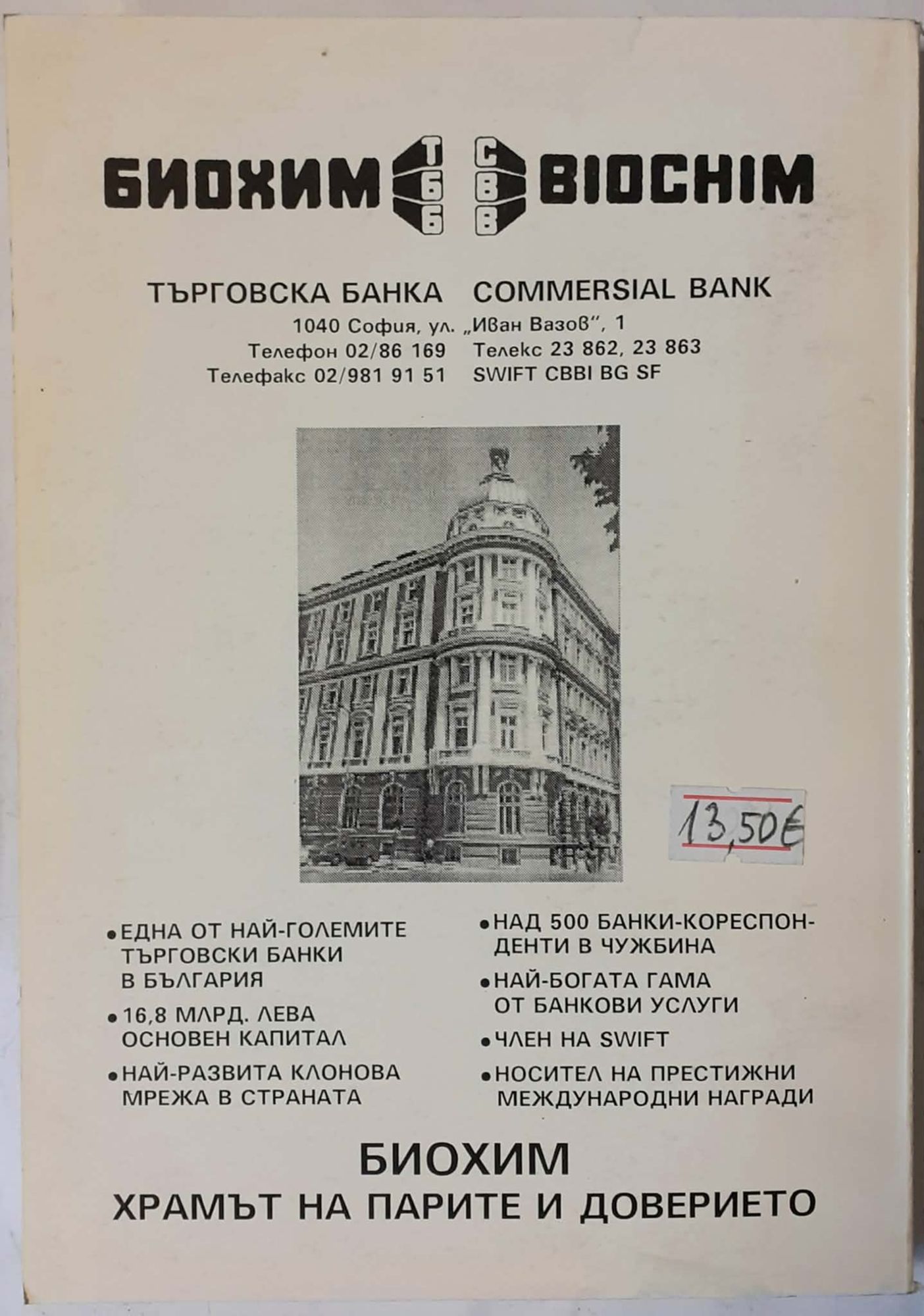 13,50 € / 26,40 лв.Много добро състояние на книжното тяло. С минимални забележки по корицата; вероятно нечетена книга.