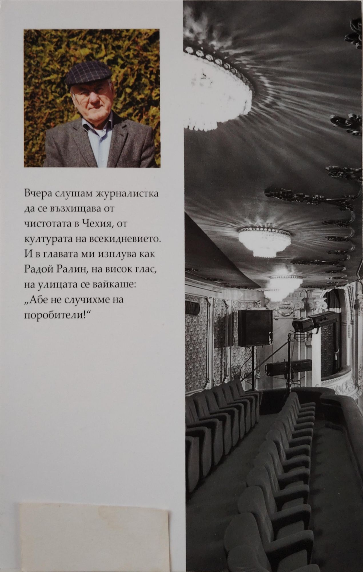 Формулата на режисьора Никола Петков "Театрални делници от сутрин до вечер" е без съмнениею всекидневие за завиждане! Доверете се на автора и ще се убедите в смисъла на подобни творчески делници. Защото без тях няма празници!