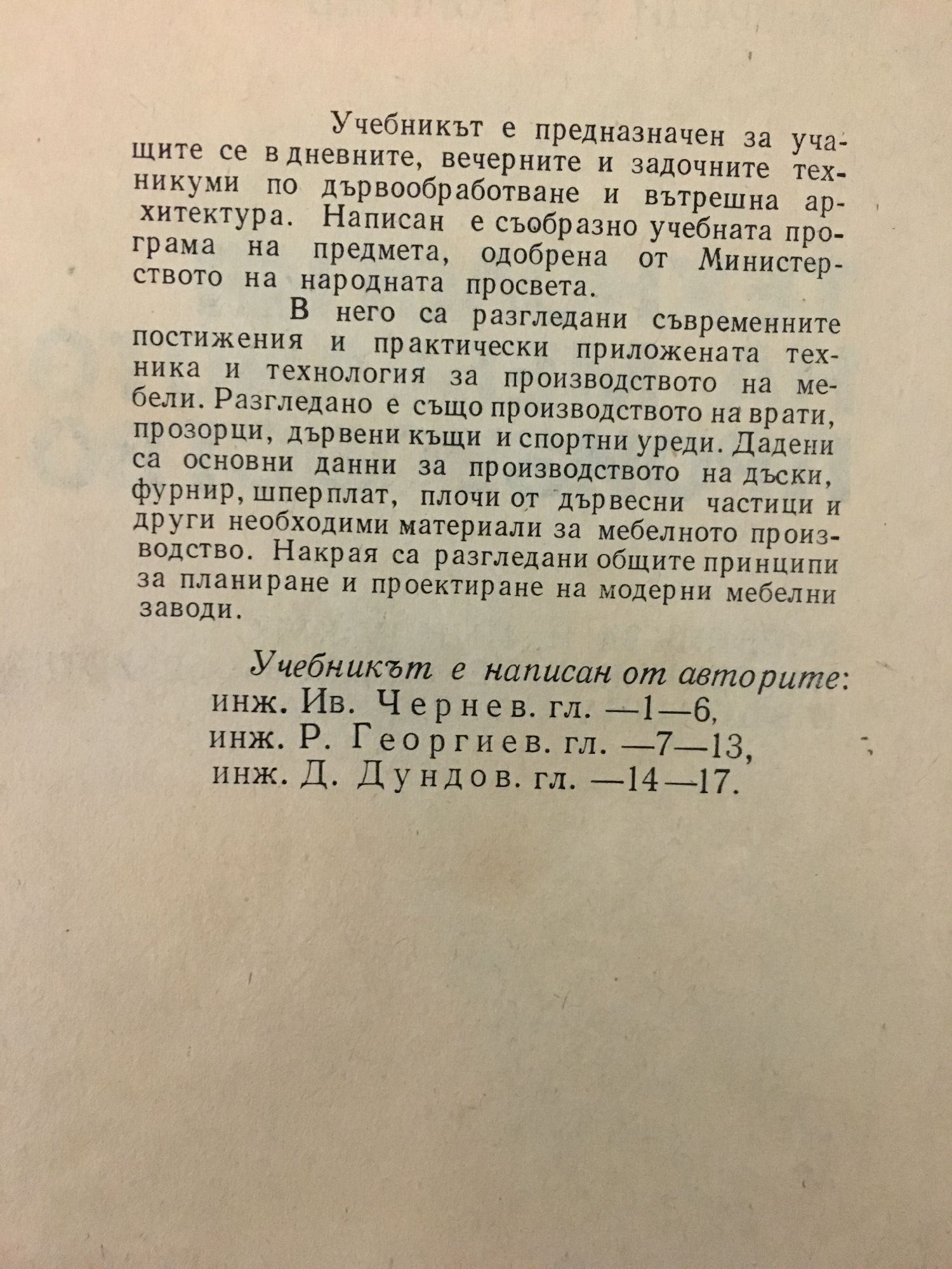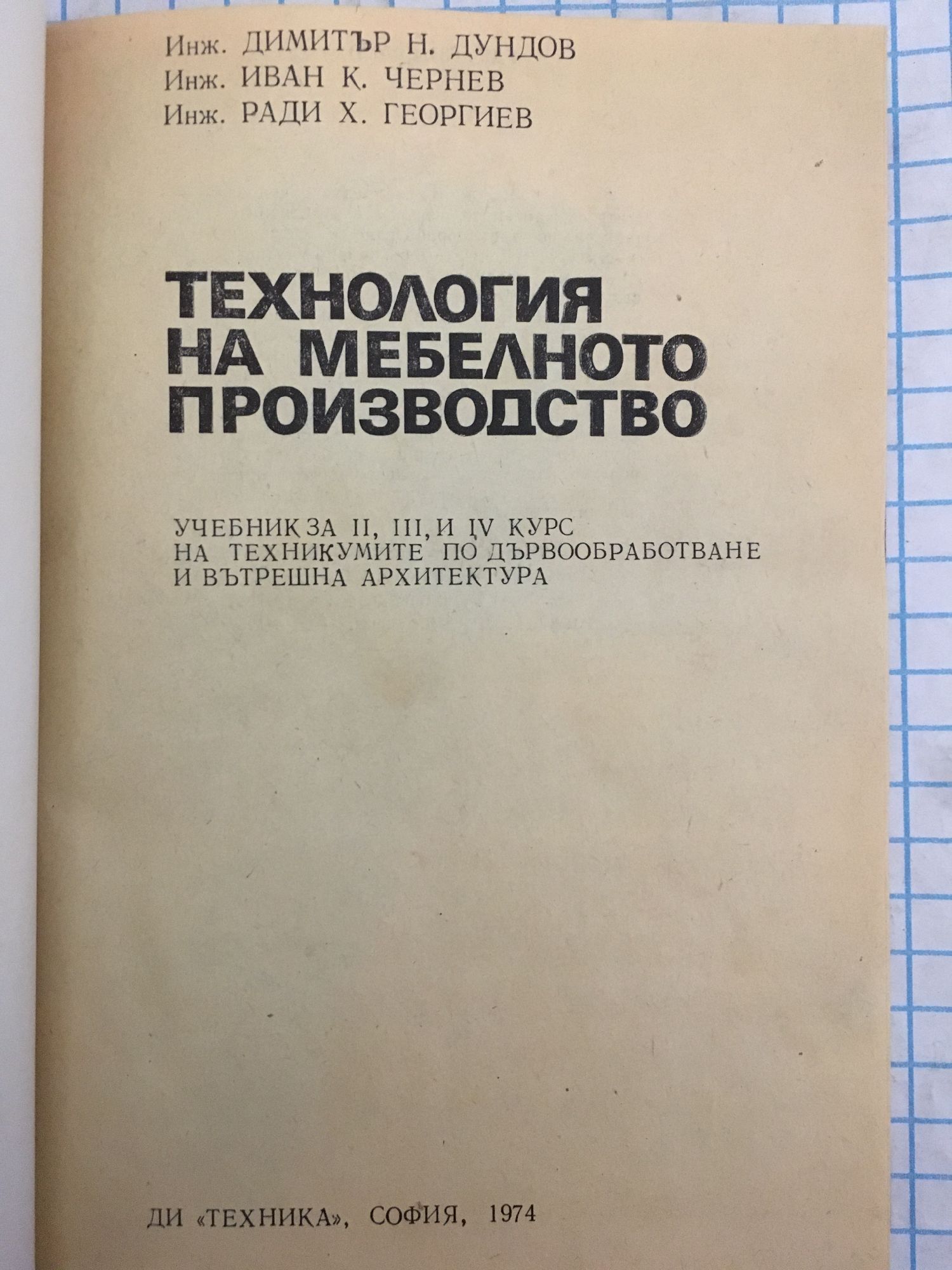 Учебник за II, III и IV курс на техникумите по дървообработване и вътрешна архитектура