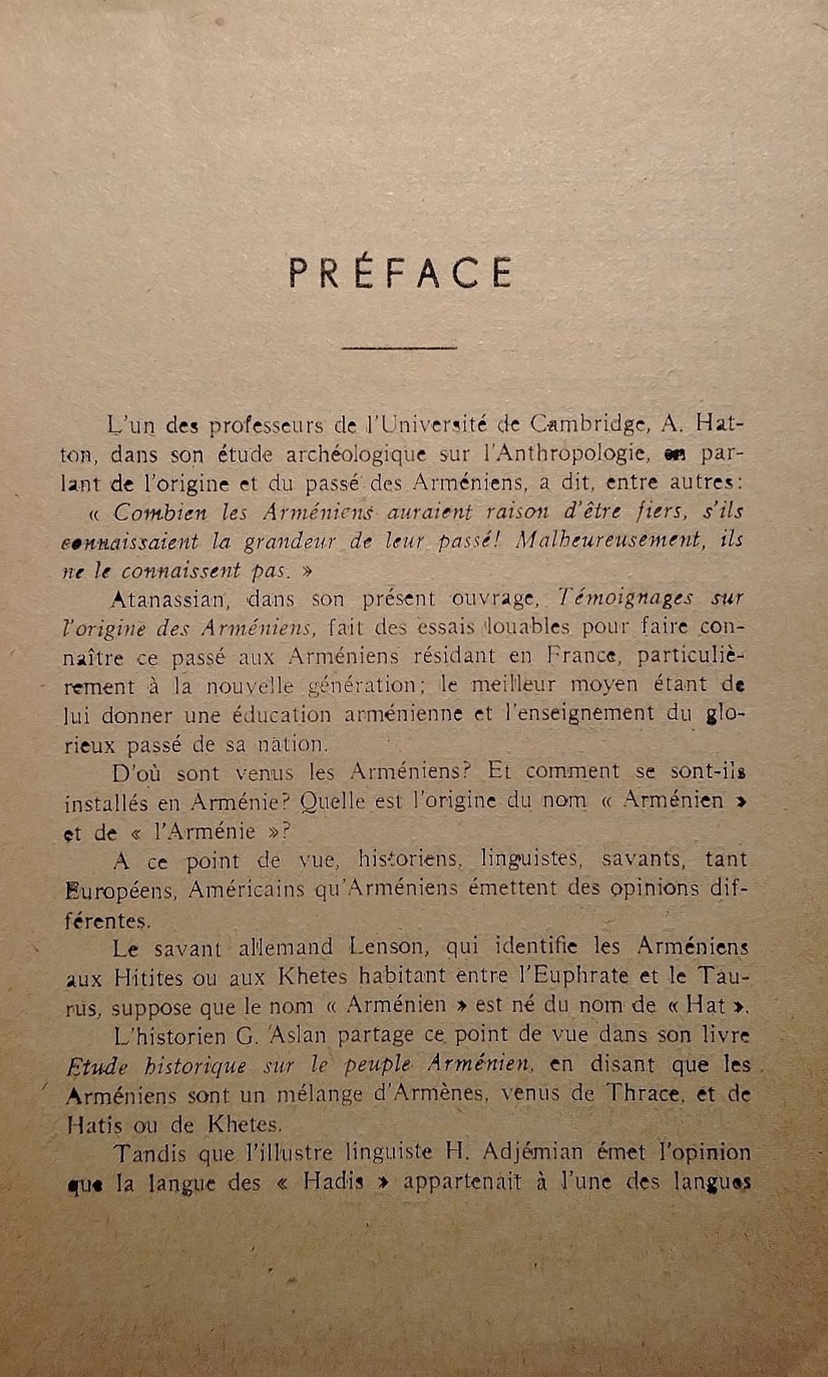 Temoignages Sur L'Origine des Armeniens