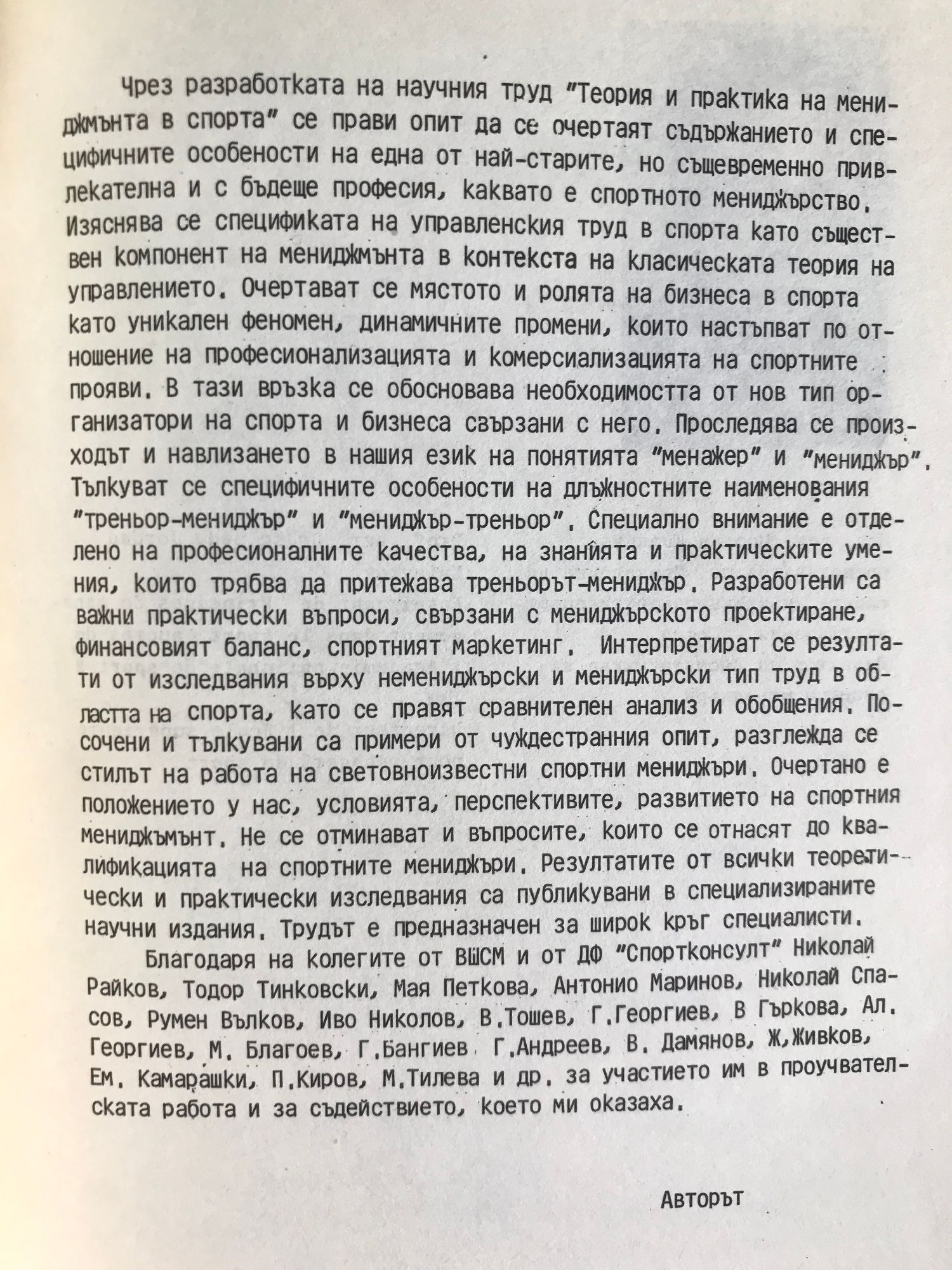 Чрез разработката се прави опит да се очертаят съдържанието и специфичните особености на една от най-старите, но същевременно привлекателна и с бъдеще професия, каквато е спортното мениджърство.