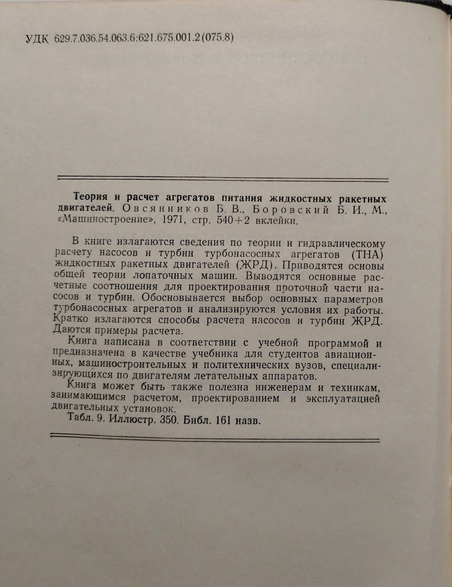 Теория и расчет агрегатов питания жидкостных ракетных двигателей