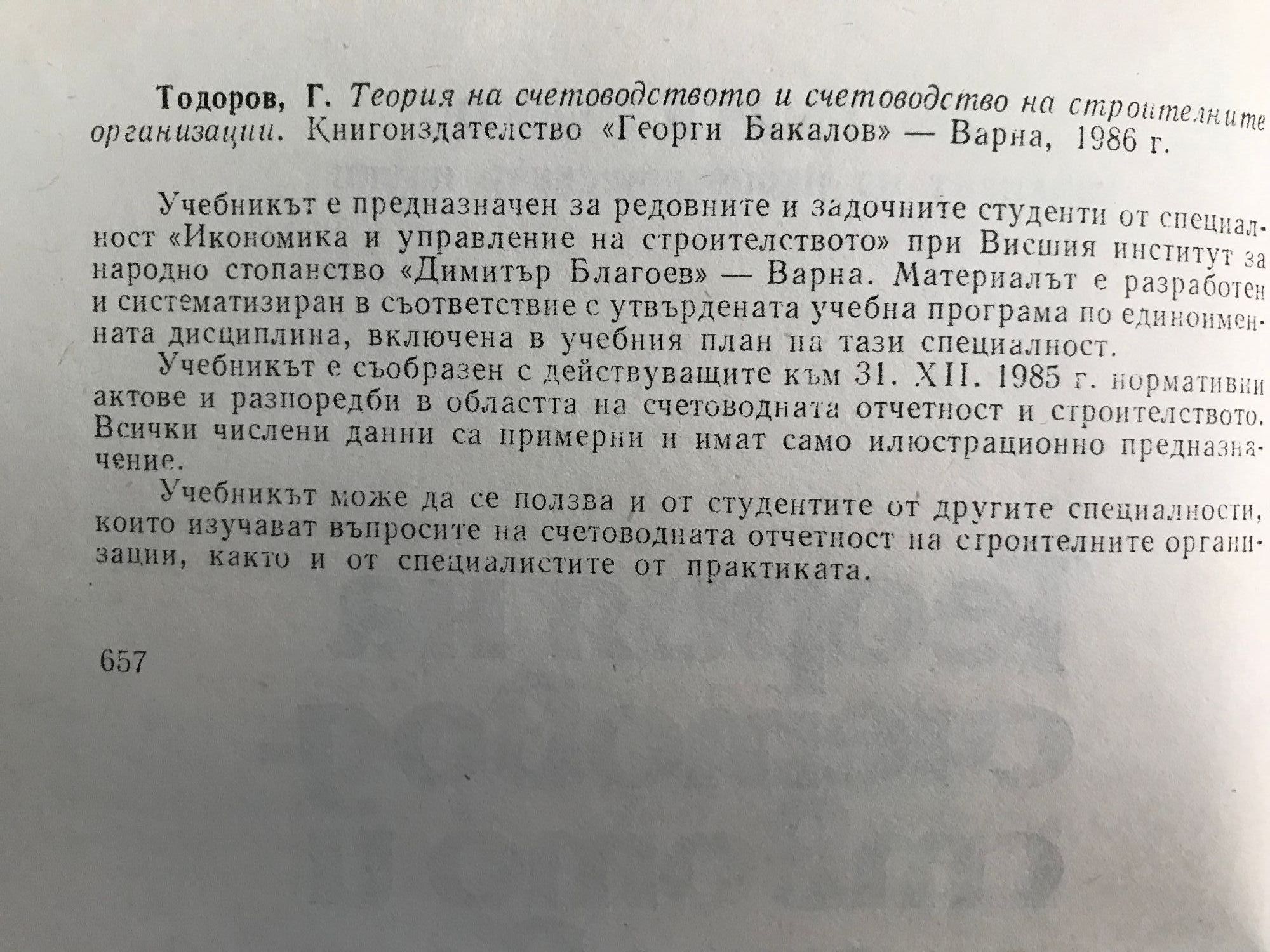 Теория на счетоводството и счетоводство на строителните организации