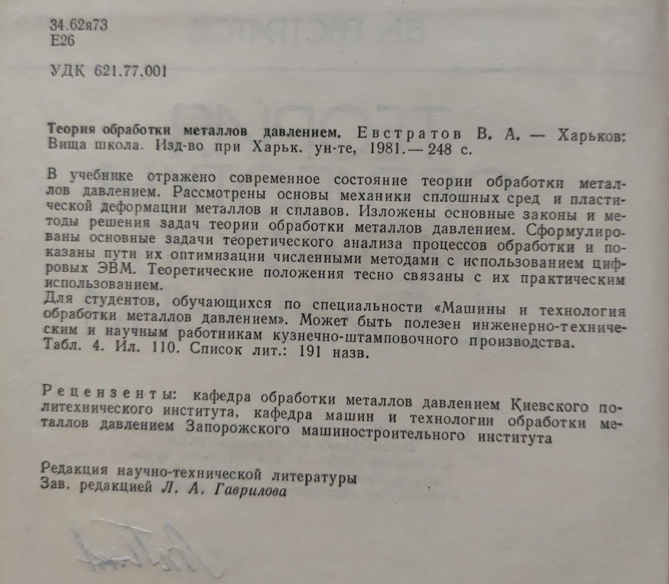 Теория обработки металлов давлением