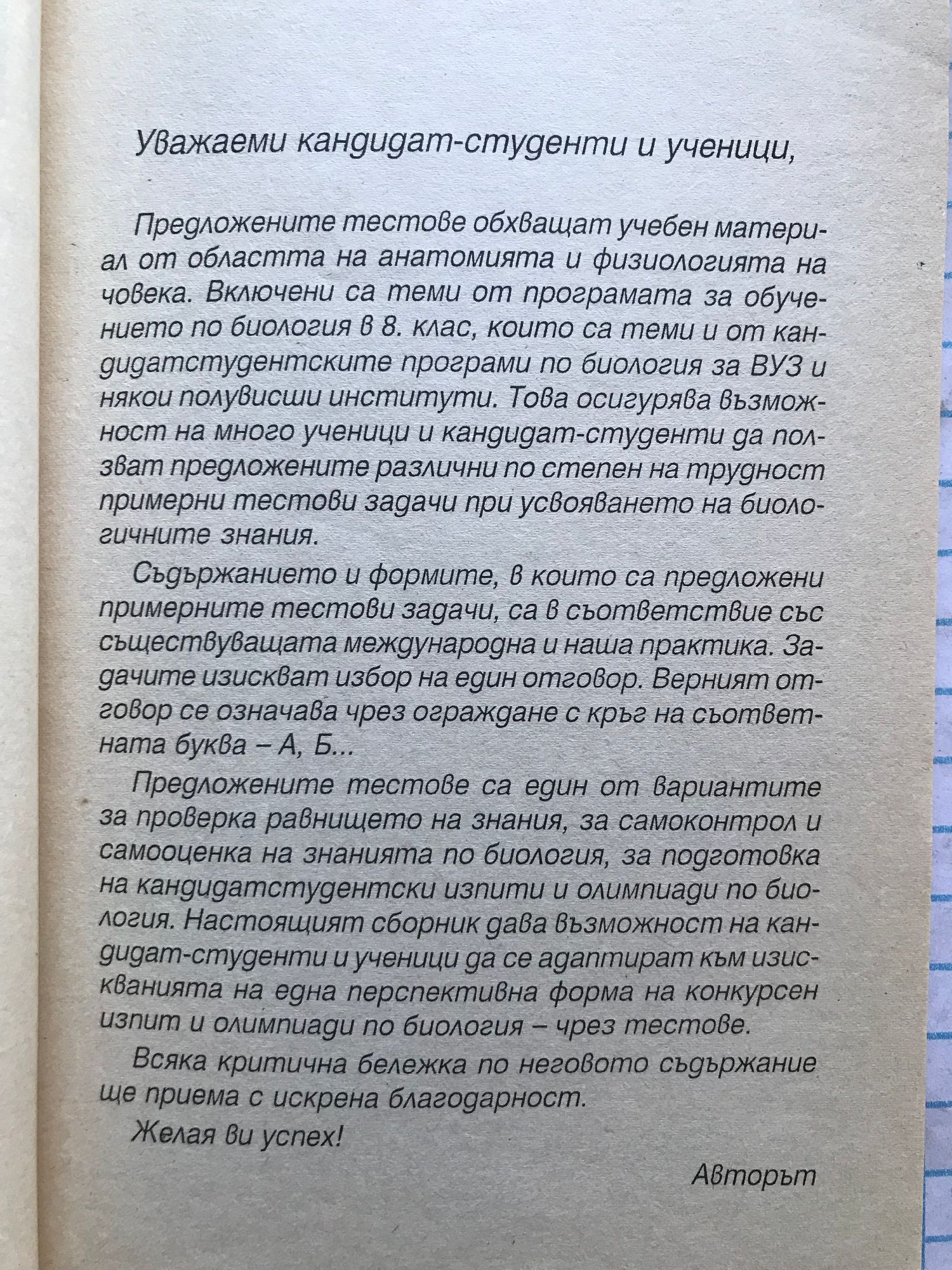 Тестове по биология за кандидат-студенти, ученици и учители