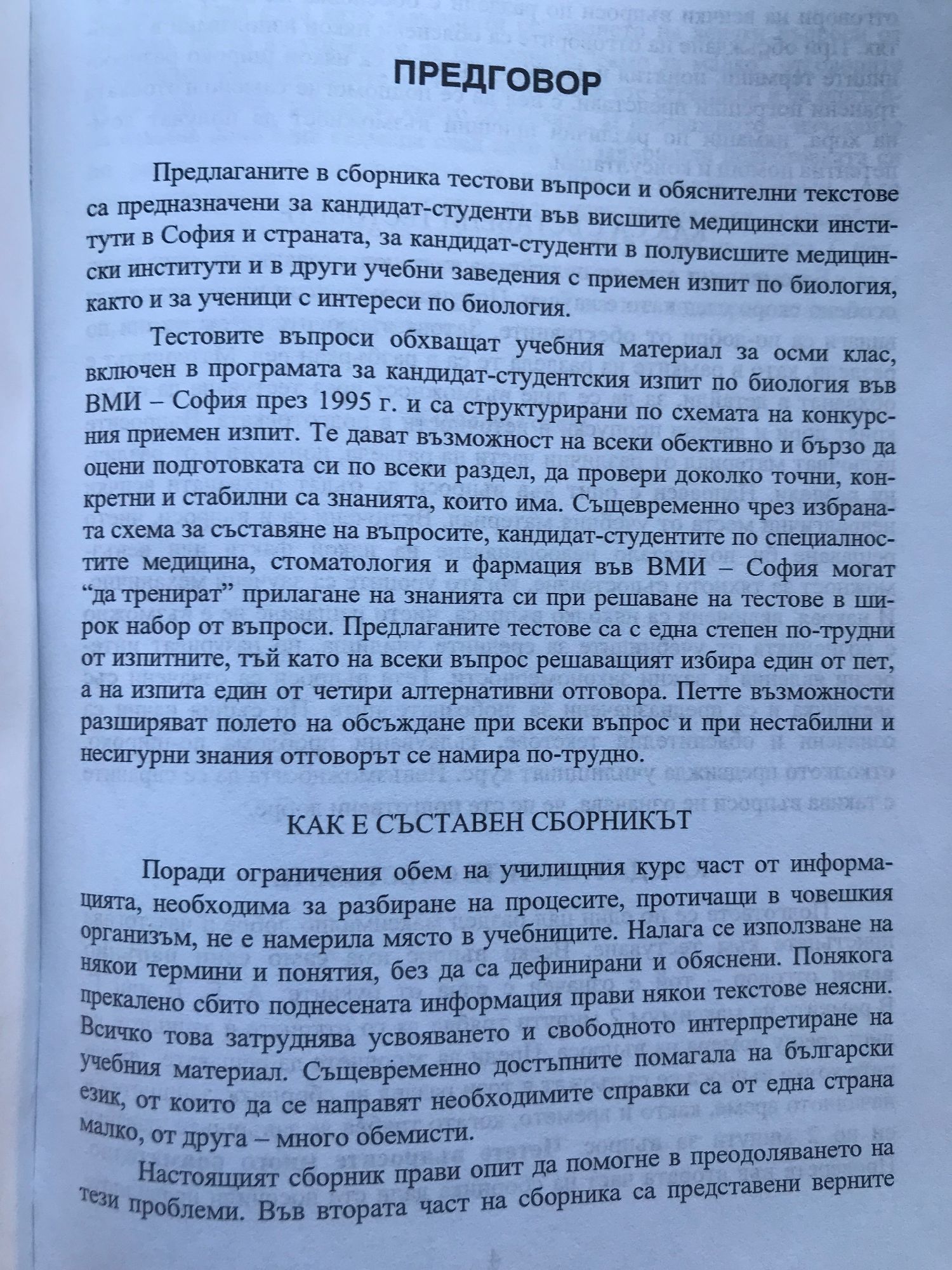 Ръководство за самоподготовка и самоконтрол на кандидат-студенти във висшите медицински институти в полувисшите медицински институти на ученици.