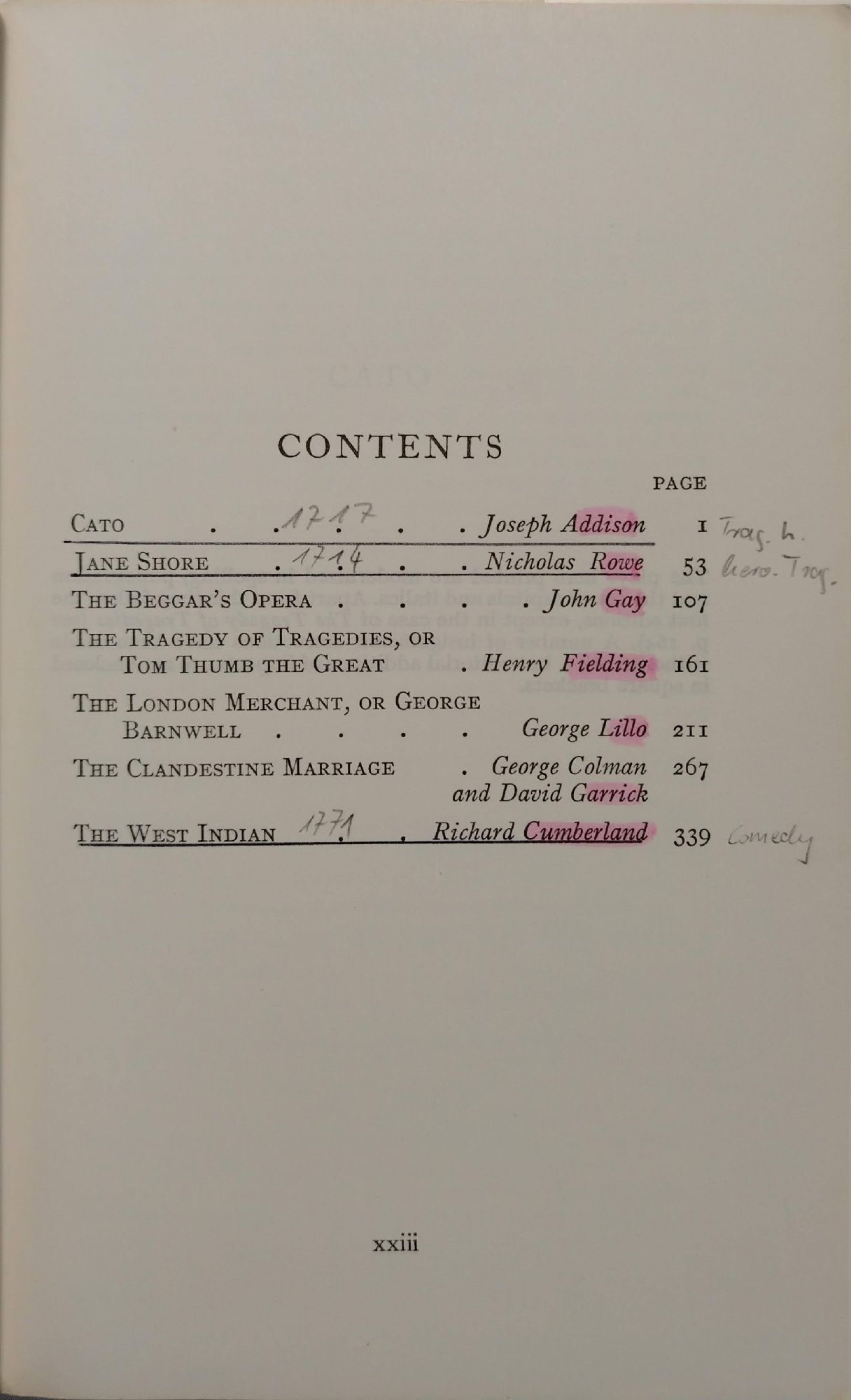 and other Eighteenth Century plays