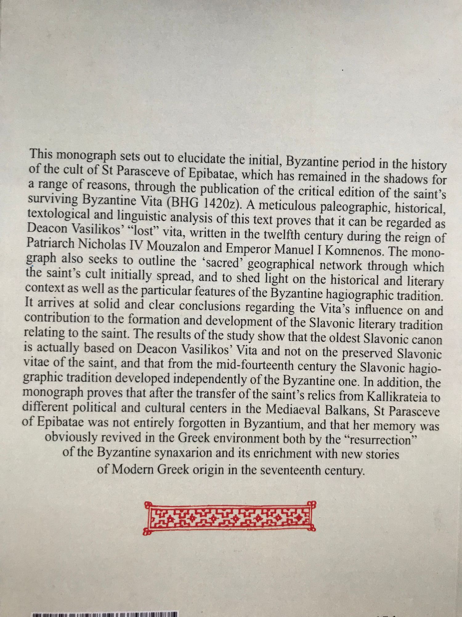 The Byzantine Vita of st Parasceve of Epibatae or the Vita by "Vasilikos the Deacon"