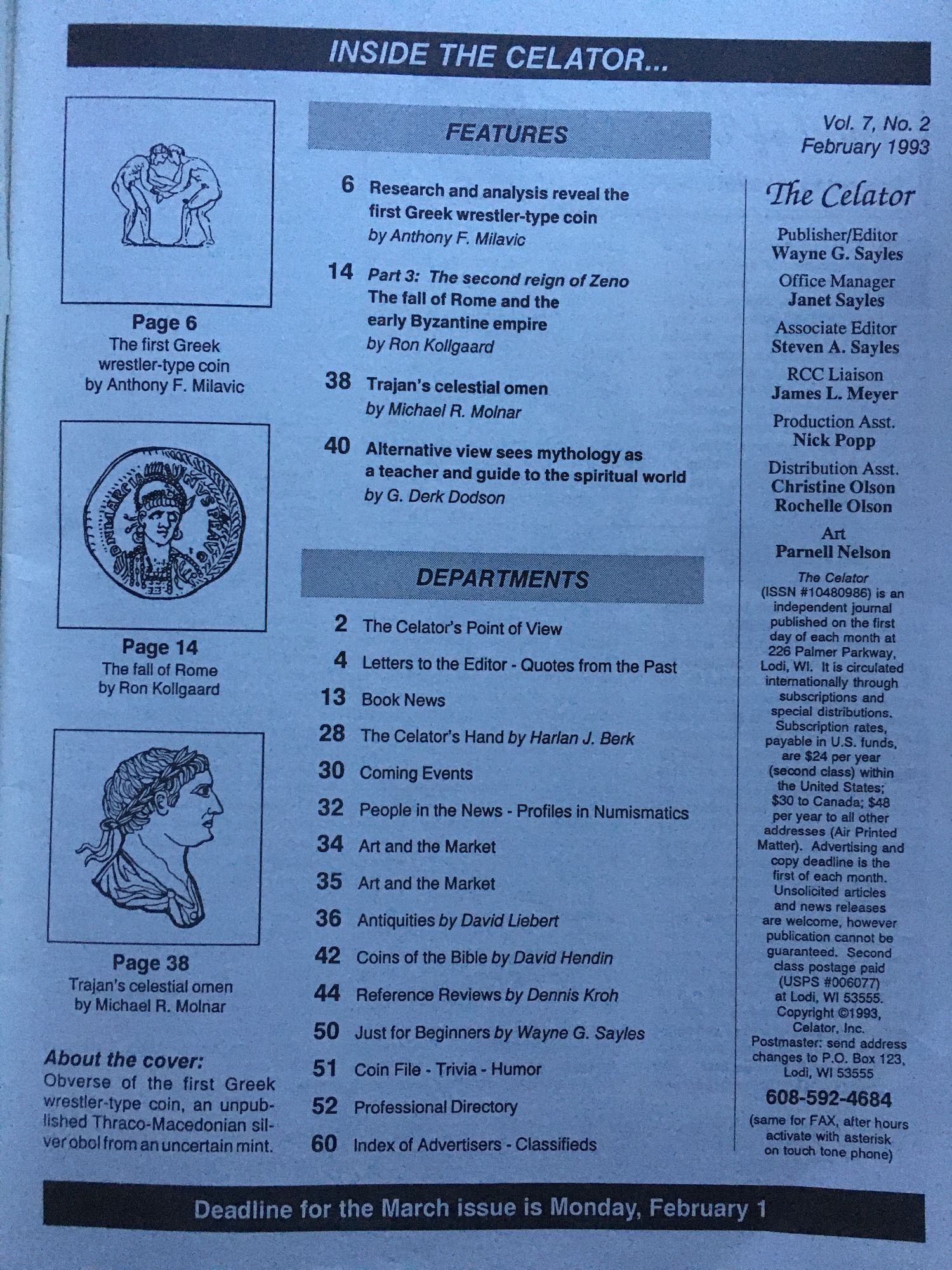 The Celator Incorporating Roman Coins and Culture Vol. 7, No. 2 February 1993