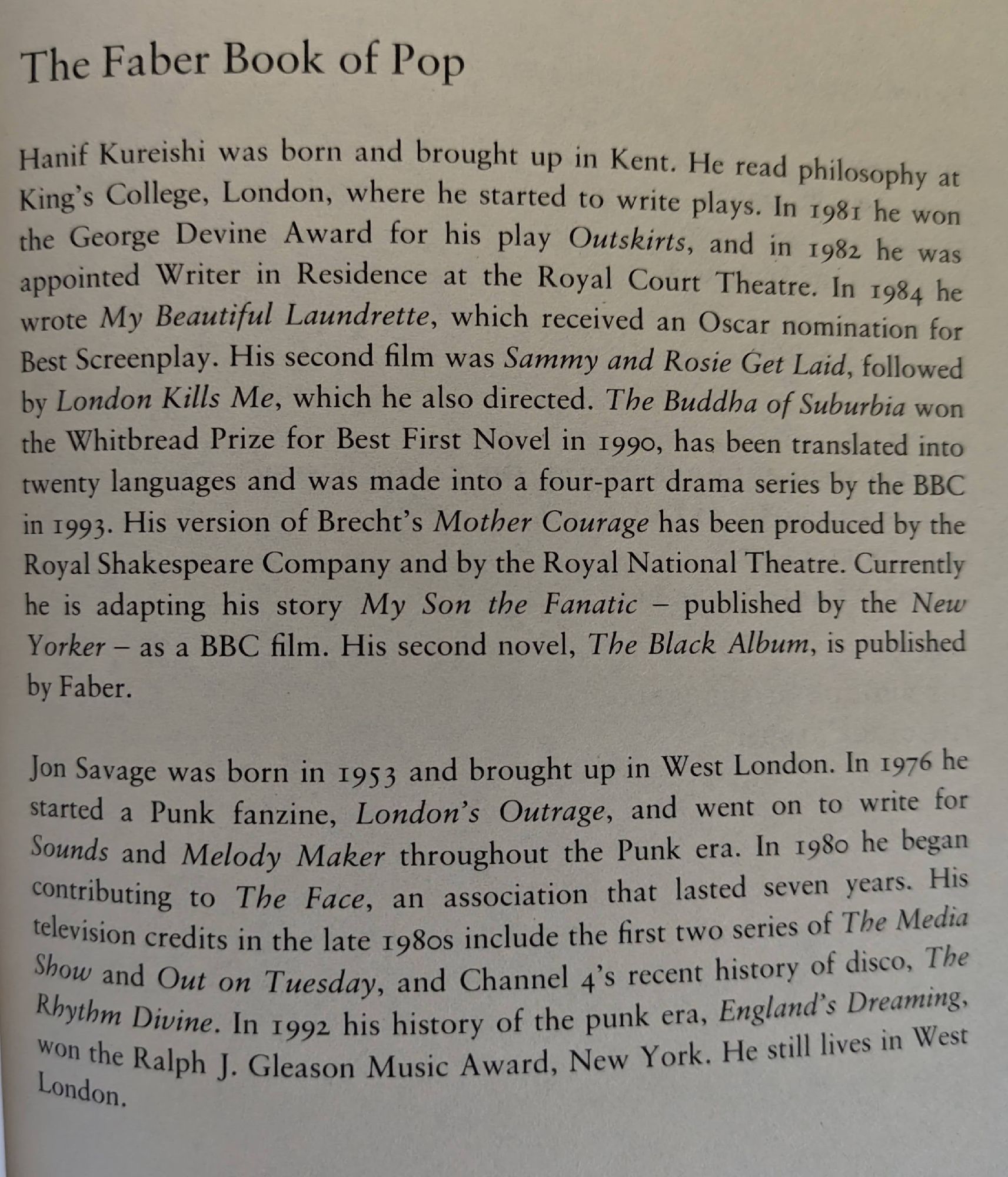 съставители Hanif Kureishi, Jon Savage