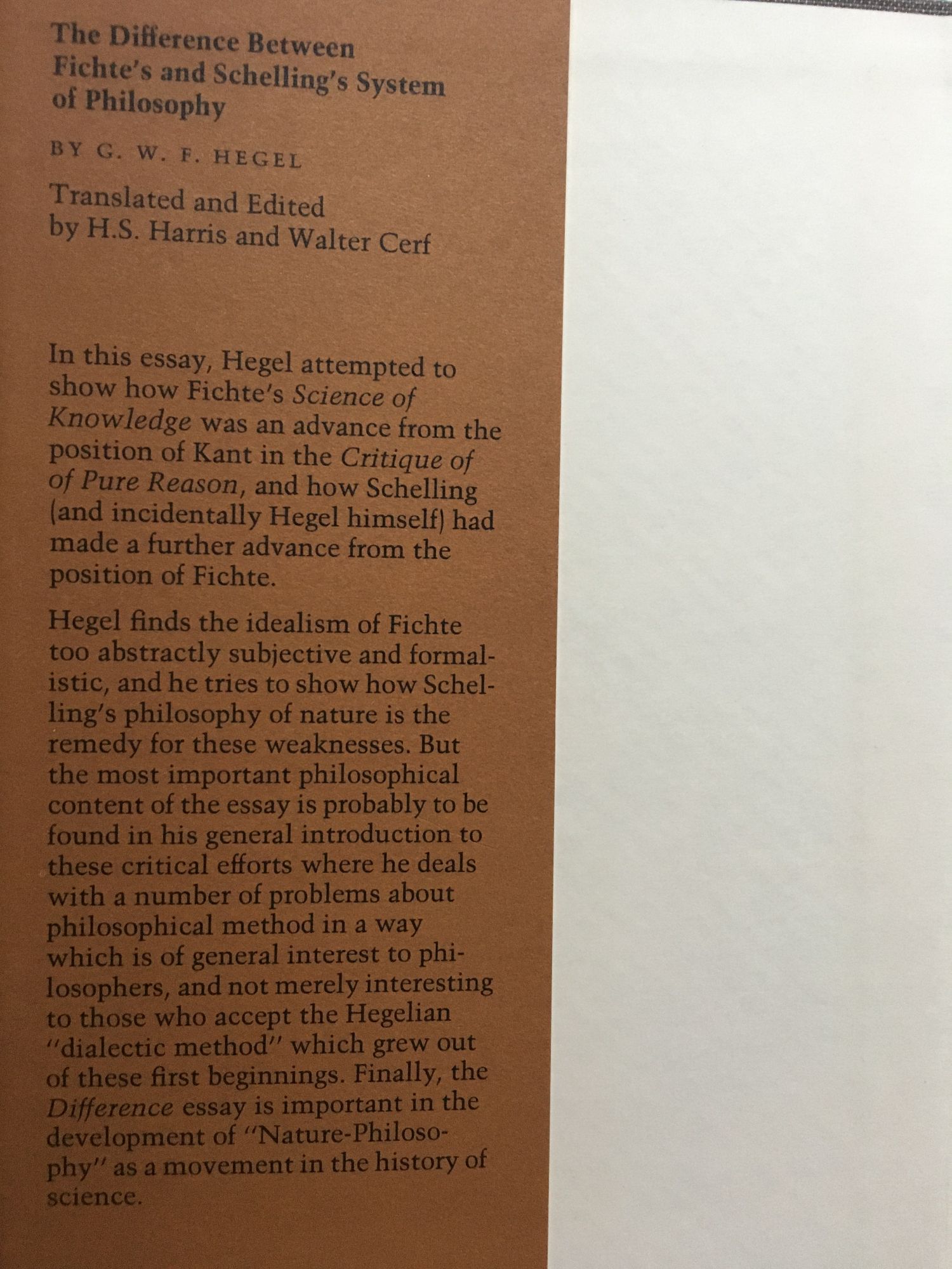 The Difference Between Fichte's and Schelling's System of Philosophy