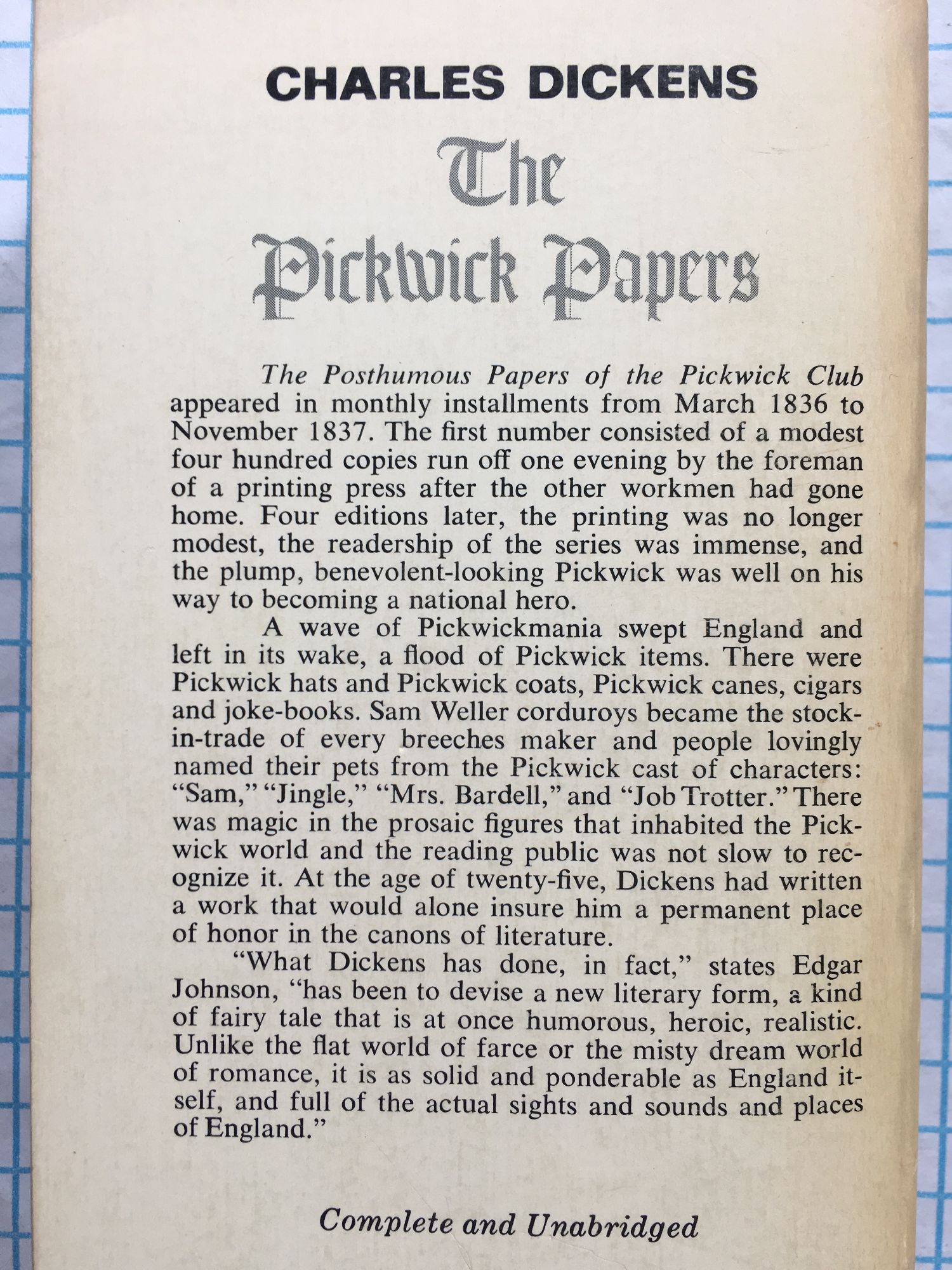 The Postbumous Papers of the Pickwick Club