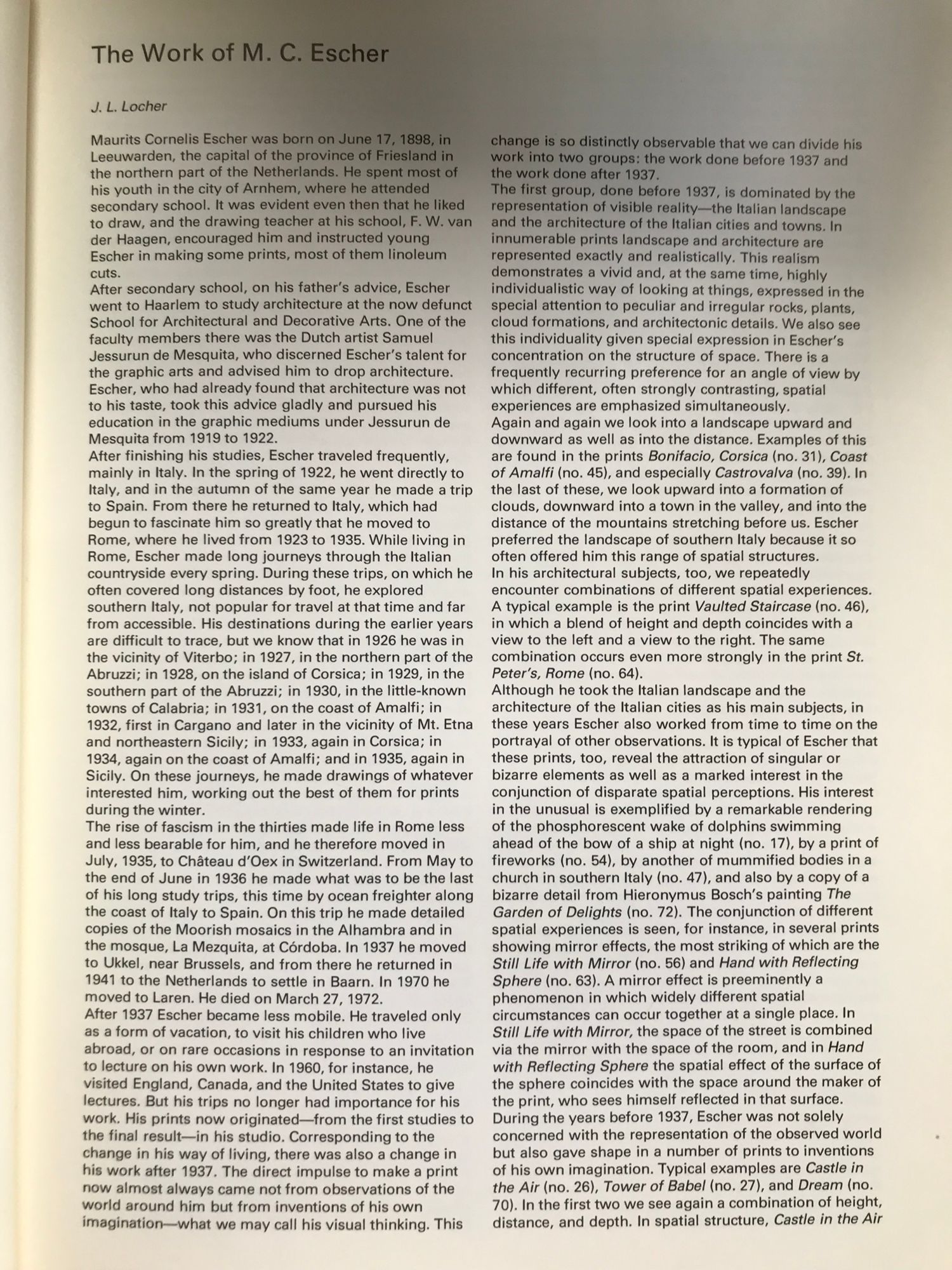 от M. C. Escher, М. К. Ешер, J. L. Locher, Дж. Л. Лочър