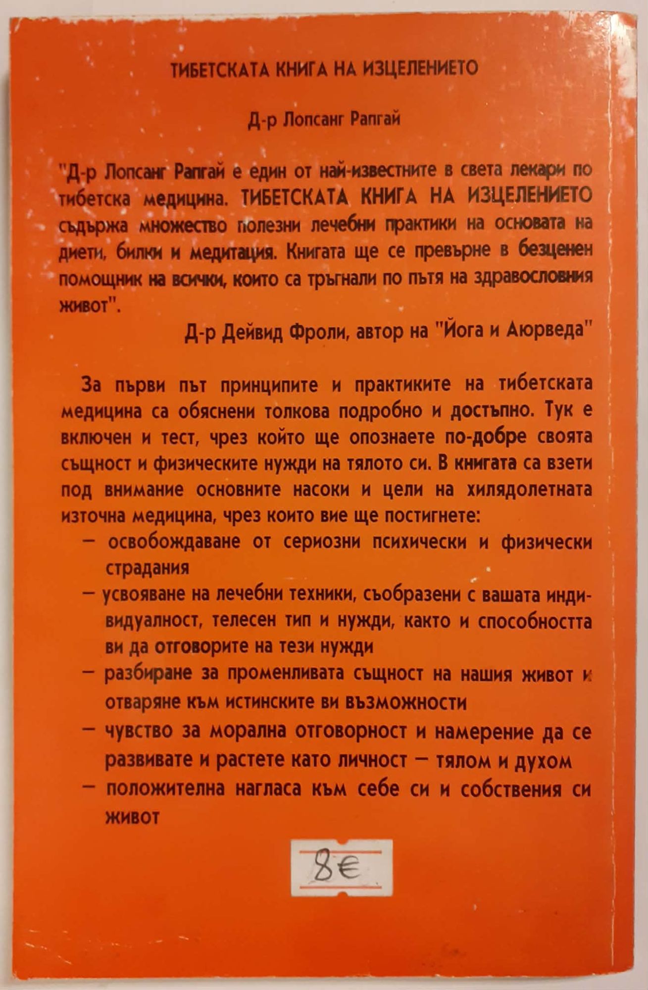 8,00 € / 15,65 лв.Много добро състояние на книжното тяло. Със следи от употреба предимно по корицата. Пожълтели листове, първият и последният с леки следи от влага по краищата, незначително по форзаците.