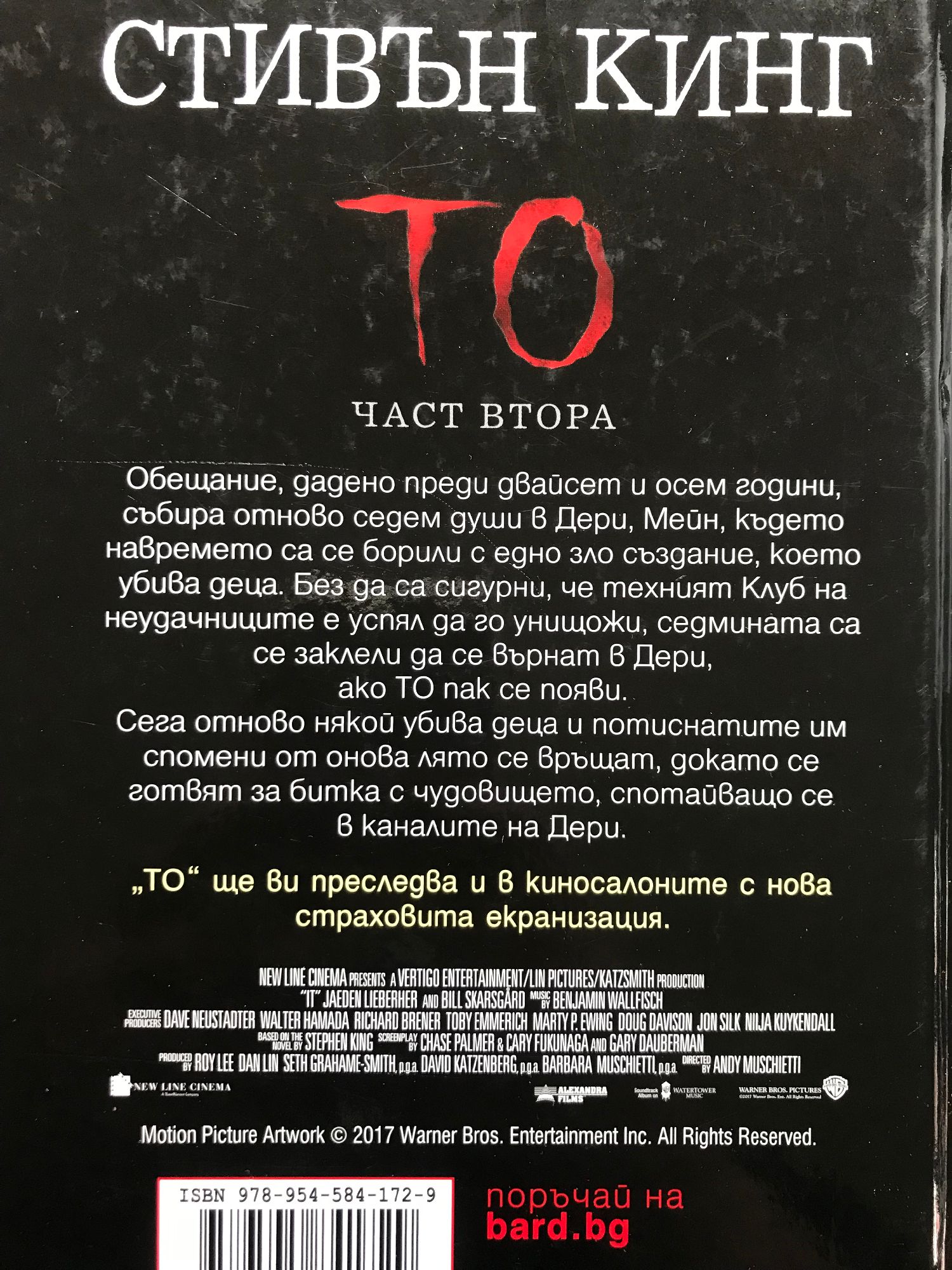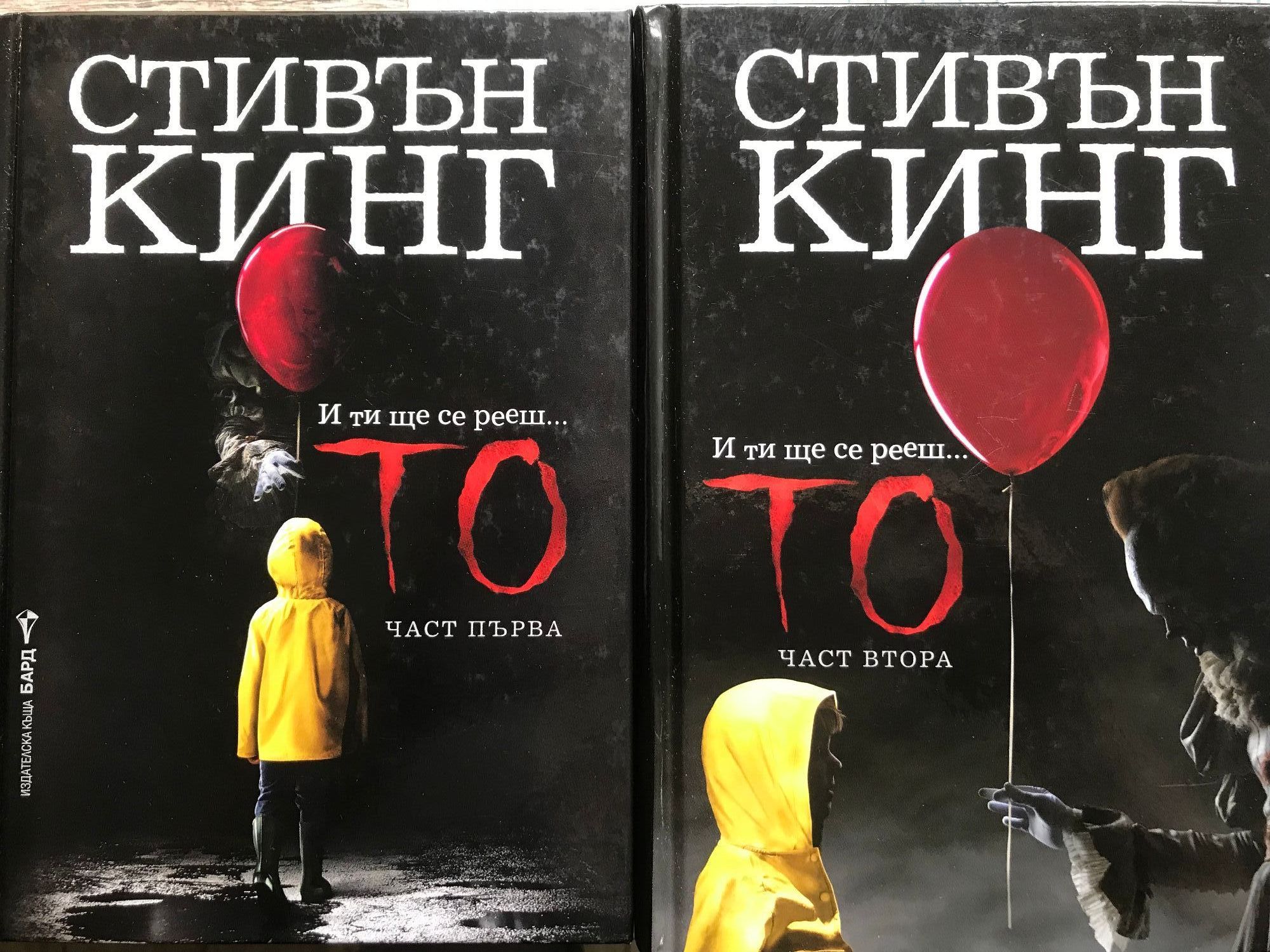 Част 1: И ти ще се рееш... Те бяха седмина, все още деца, когато за първи път се сблъскаха с ужаса. Сега са пораснали мъже и жени, впуснали се по широкия свят в търсене на успех и щастие. Ала никой от тях не може да устои на силата, която ги тегли обратно в Дери, Мейн, където ще се изправят пред ужас без край и едно зло без име. Кое е то? Прочетете ТО и ще разберете... ако ви стиска! „ТО“ ще ви преследва и в киносалоните с нова страховита екранизация. Част 2: Обещание, дадено преди двайсет и осем години събира отново седем души в Дери, Мейн, където като деца са се борили с едно зло създание, което убива деца. Без да са сигурни, че техният Клуб на неудачниците е успял да го унищожи навремето, седмината се заклеват да се върнат в Дери, ако ТО пак се появи. Сега отново някой убива деца и потиснатите им спомени от онова лято се връщат, докато се готвят за битка с чудовището, спотайващо се в каналите на Дери.