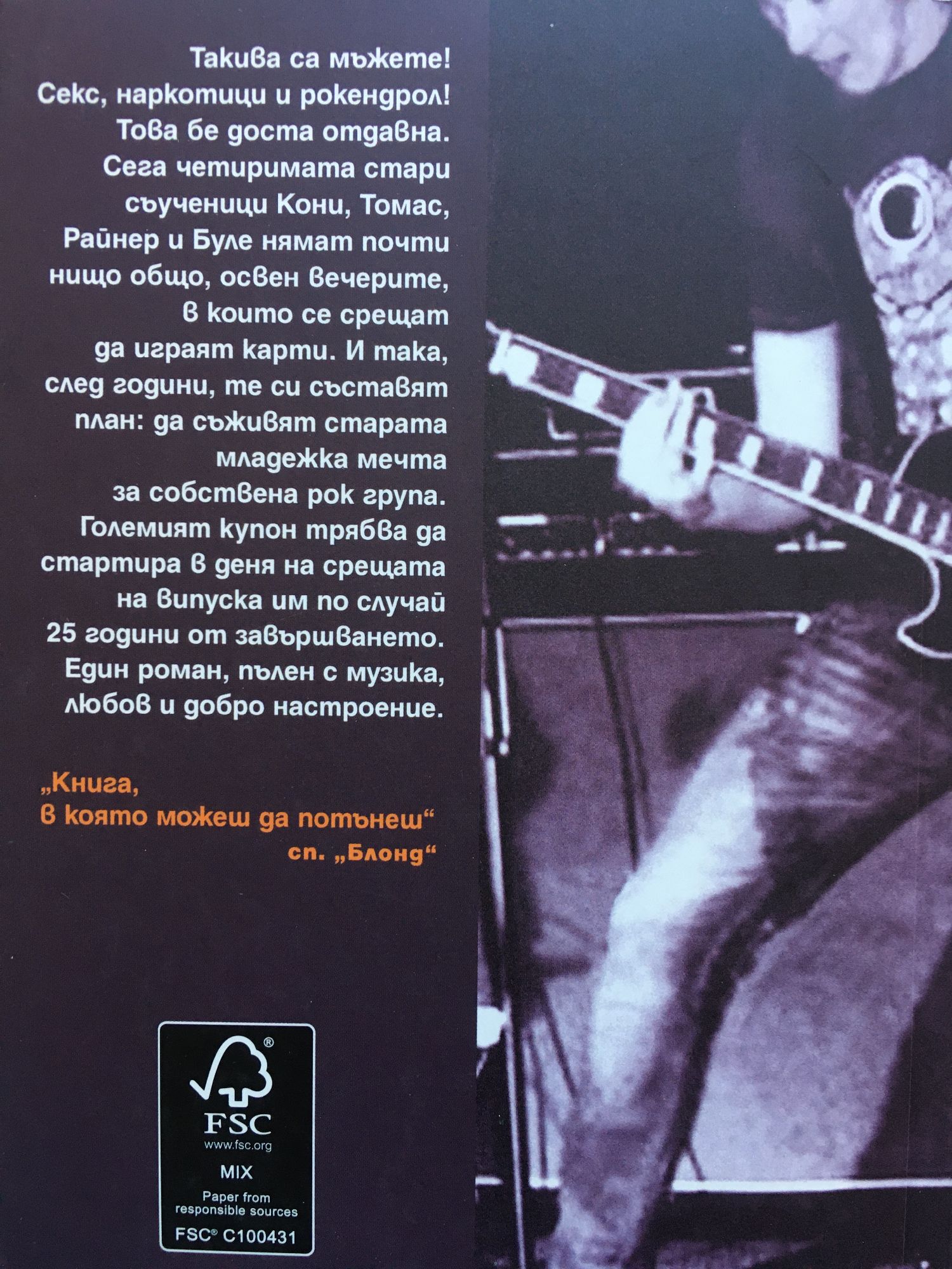 Такива са мъжете! Секс, наркотици и рокендрол! Това бе доста отдавна. Сега четиримата стари съученици Кони, Томас, Райнер и Буле нямат почти нищо общо, освен вечерите, в които се срещат да играят карти. И така, след години, те си съставят план: да съживят старата младежка мечта за собствена рок група. Големият купон трябва да стартира в деня на срещата на випуска им по случай 25 години от завършването. Един роман, пълен с музика, любов и добро настроение.