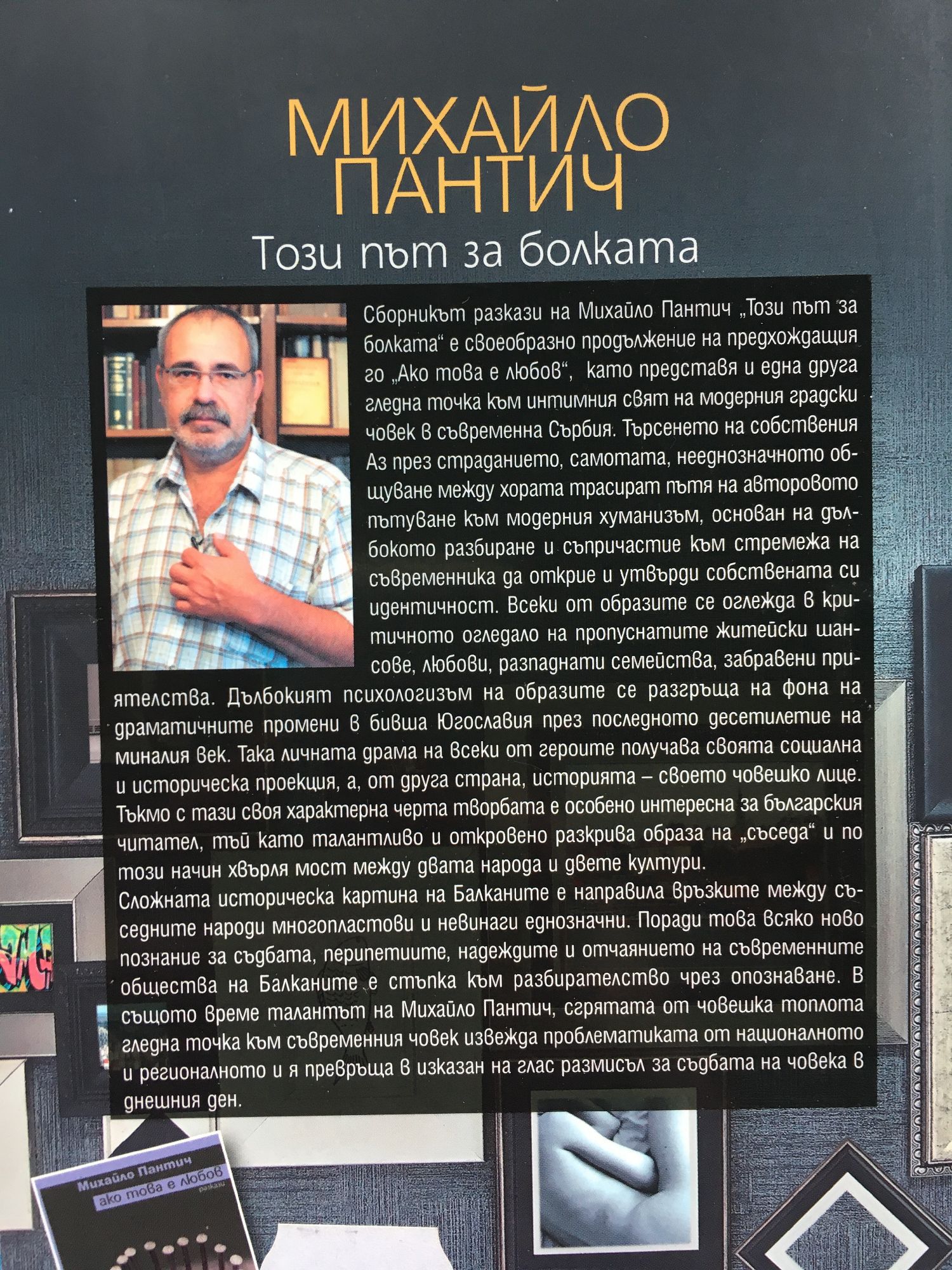 Сборникът разкази на Михайло Пантич „Този път за болката“ е своеобразно продължение на предхождащия го „Ако това е любов“, като представя и една друга гледна точка към интимния свят на модерния градски човек в съвременна Сърбия. Търсенето на собствения Аз през страданието, самотата, нееднозначното общуване между хората трасират пътя на авторовото пътуване към модерния хуманизъм, основан на дълбокото разбиране и съпричастие към стремежа на съвременника да открие и утвърди собствената си идентичност. Всеки от образите се оглежда в критичното огледало на пропуснатите житейски шансове, любови, разпаднати семейства, забравени приятелства. Дълбокият психологизъм на образите се разгръща на фона на драматичните промени в бивша Югославия през последното десетилетие на миналия век. Така личната драма на всеки от героите получава своята социална и историческа проекция, а от друга страна историята – своето човешко лице. Тъкмо с тази своя особеност творбата е особено интересна за българския читател, тъй като талантливо и откровено разкрива образа на „съседа“ и по този начин хвърля мост между двата народа и двете култури. Сложната историческа картина на Балканите е направила връзките между съседните народи многопластови и не винаги еднозначни. Поради това всяко ново познание за съдбата, перипетиите, надеждите и отчаянието на съвременните общества на Балканите е стъпка към разбирателство чрез опознаване. В същото време талантът на Михайло Пантич, сгрятата от човешка топлота гледна точка към съвременния човек извежда проблематиката от националното и регионалното и я превръща в изказан на глас размисъл за съдбата на човека в днешния ден.
