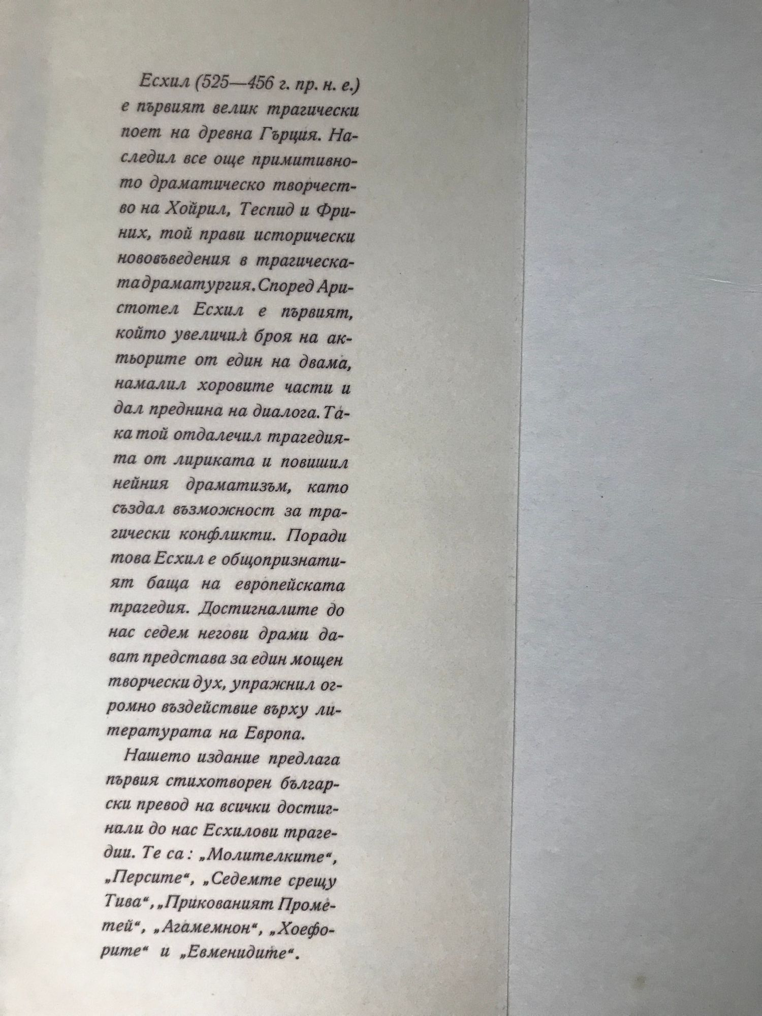 Молителките. Перси. Седемте Срещу Тива. Прикованият Прометей. Агамемнон. Хоефорите. Евменидите