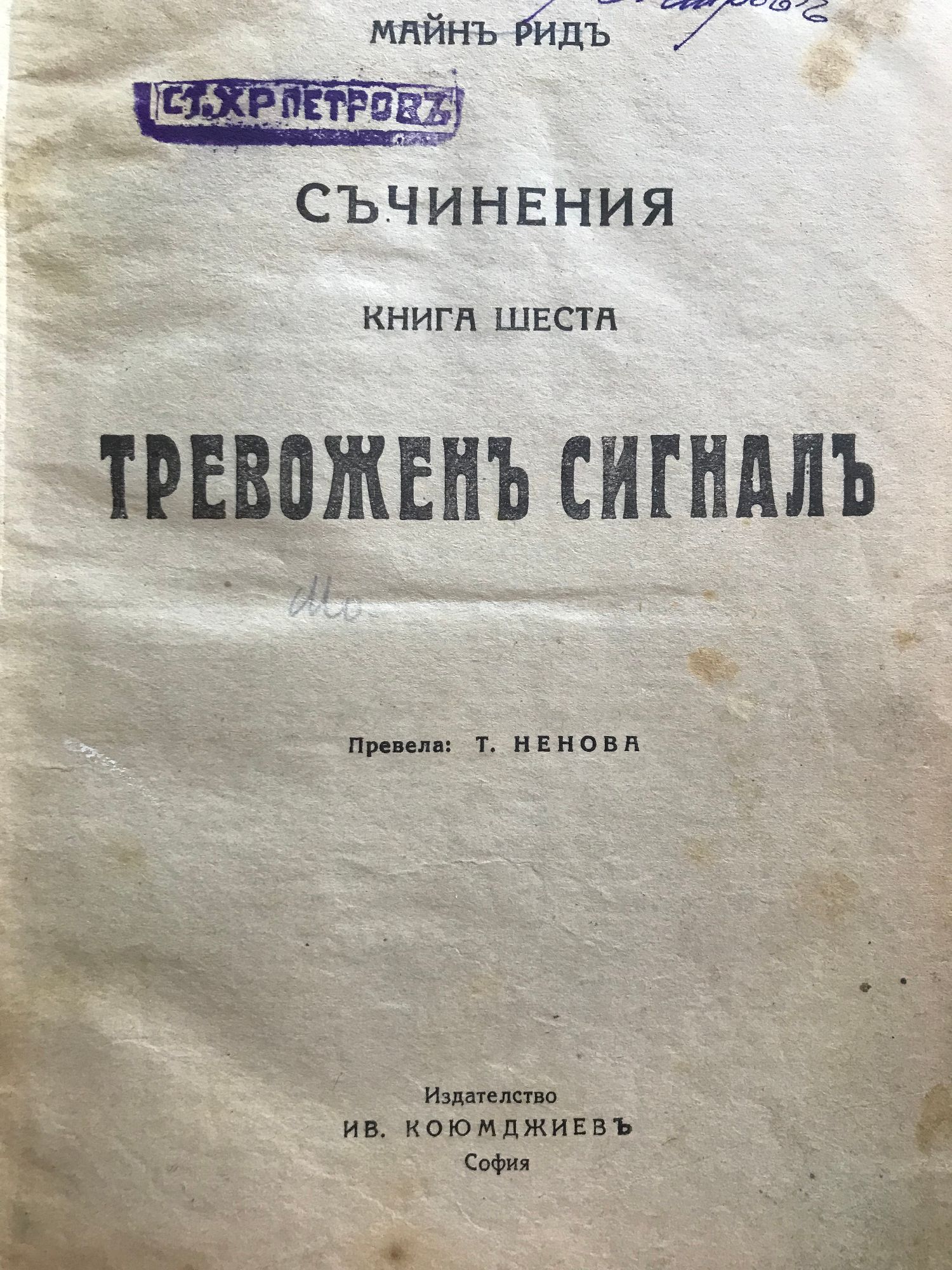 10,00 лв. / 5,11 €Добро състояние на книжното тяло. Със забележки по корицата и пожълтели страници. Скъсано парче от един лист (текстът е засегнат от два реда).Числа и драскано на първи форзац от предишния притежател.