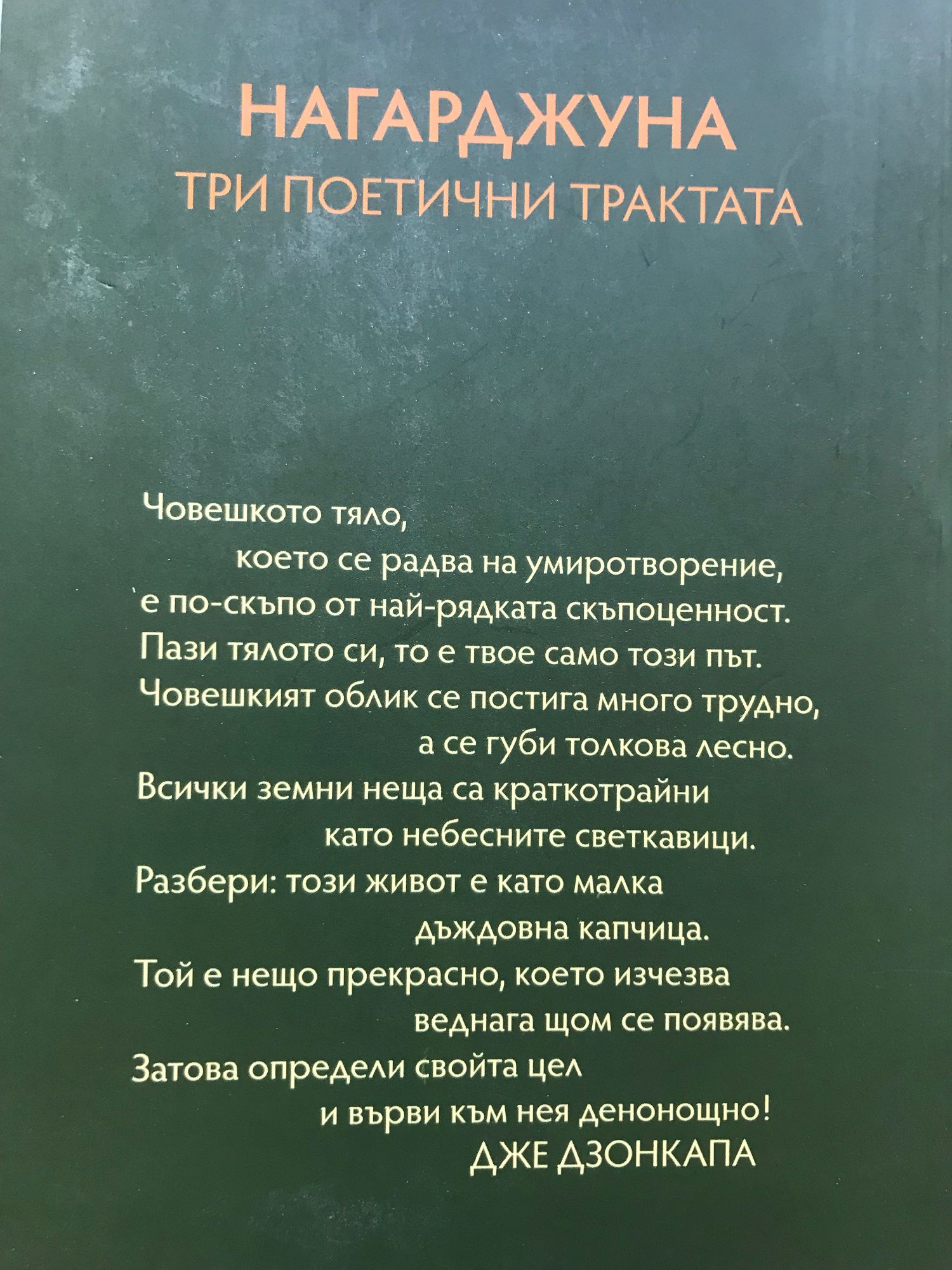 Човешкото тяло, което се радва на умиротворение, е по-скъпо от най-рядката скъпоценност. Пази тялото си, то е твое само този път. Човешкият облик се постига много трудно, а се губи толкова лесно. Всички земни неща са краткотрайни като небесните светкавици. Разбери: този живот е като малка дъждовна капчица. Той е нещо прекрасно, което изчезва веднага щом се появява. Затова определи свойта цел и върви към нея денонощно! Дже Дзонкапа