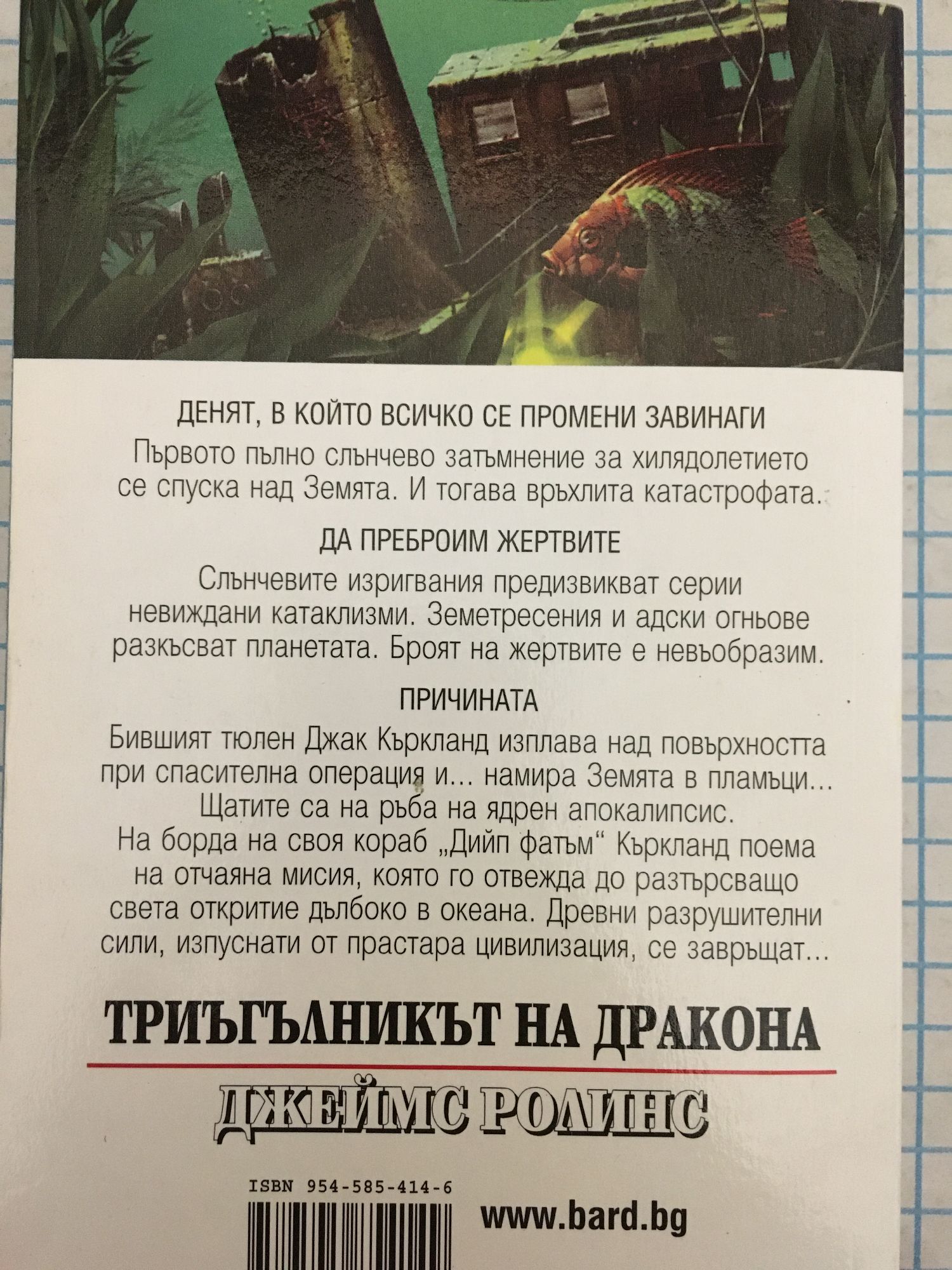 Автор на “Кръвта на сатаната“, “Амазония“, “Последната тайна на земята“ Елате да преброим жертвите! Първото пълно слънчево затъмнение за хилядолетието спуска покрова си над земята. И тогава връхлита катастрофата... Земетресения и адски огньове разкъсват планетата. Хаосът е невъобразим. Денят, когато всичко се промени завинаги... Бившият тюлен Джак Къркланд изплава на повърхността при спасителна операция, за да се наслади на обхваната в пламъци земя. На борда на своя кораб “Дийп Фатъм” Къркланд поема невъзможна мисия, която го отвежда до разтърсващо света откритие дълбоко под повърхността на океана