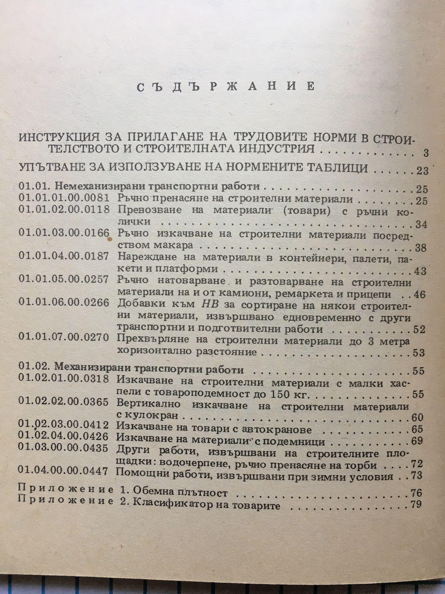 Трудови норми в строителството за пренос и превоз на строителните материали - сборник № 1