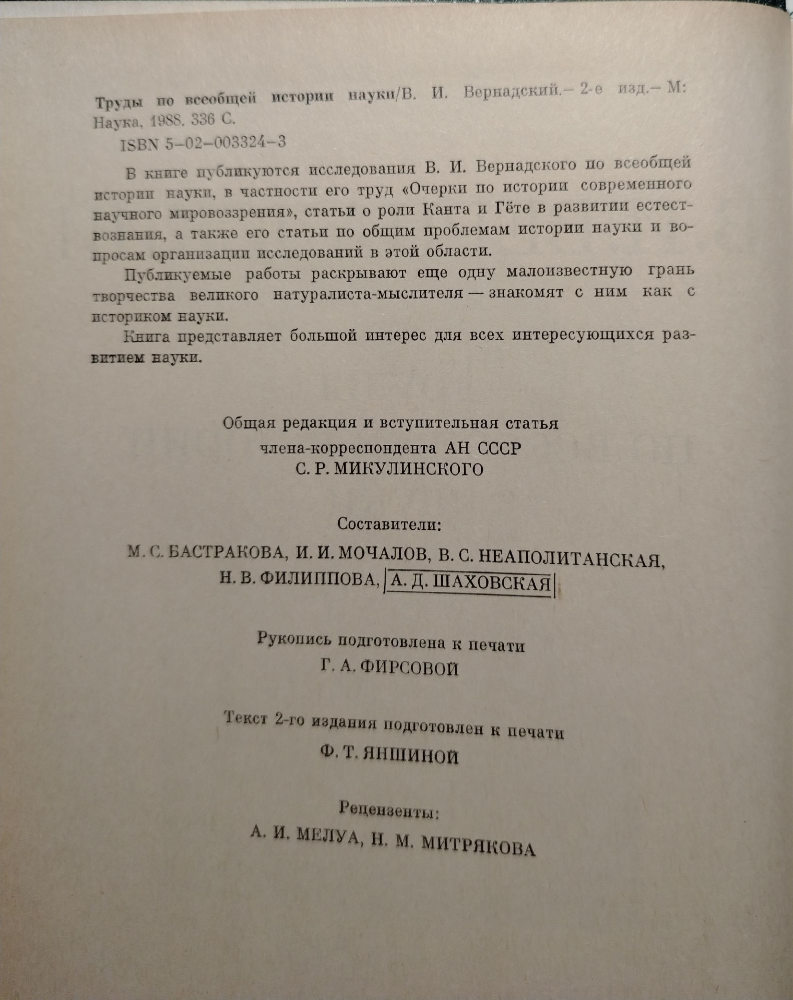 от В. И. Вернадский