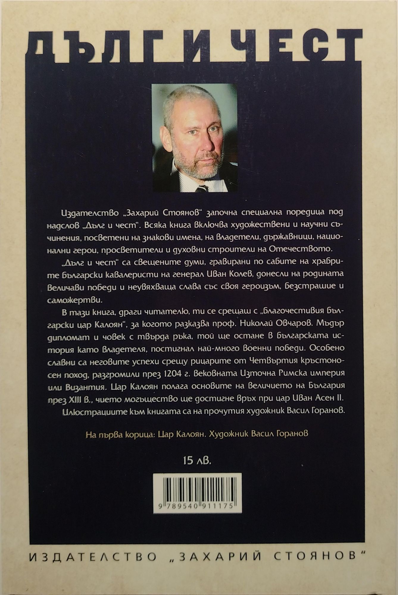 В тази книга, драги читателю, ти се срещаш с „благочестивия български цар Калоян“, за когото разказва проф. Николай Овчаров. Мъдър дипломат и човек с твърда ръка, той ще остане в българската история като владетеля, постигнал най-много военни победи. Особено славни са неговите успехи срещу рицарите от Четвъртия кръстоносен поход, разгромили през 1204 г. вековната Източна Римска империя или Византия. Цар Калоян полага основите на величието на България през XIII в., чието могъщество ще достигне връх при цар Иван Асен II.