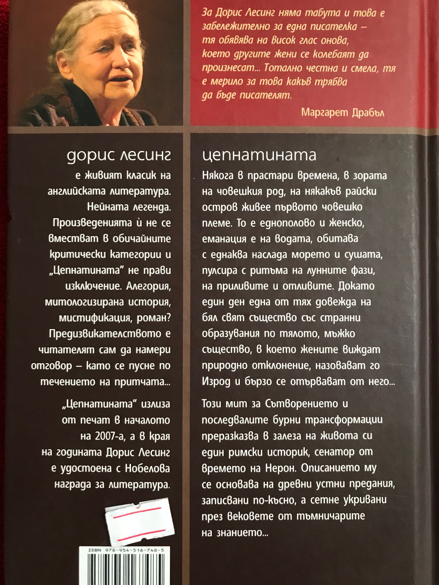 Някога в прастари времена, в зората на човешкия род, на някакъв райски остров живее първото човешко племе. То е еднополово и женско, еманация е на водата, обитава с еднаква наслада морето и сушата, пулсира с ритъма на лунните фази, на приливите и отливите. Докато един ден една от тях довежда на бял свят същество със странни образувания по тялото, мъжко същество, в което жените виждат природно отклонение, назовават го Изрод и бързо се отървават от него... Този мит за Сътворението и последвалите бурни трансформации преразказва в залеза на живота си един римски историк, сенатор от времето на Нерон. Описанието му се основава на древни устни предания, записвани по-късно, а сетне укривани през вековете от тъмничарите на знанието... Дорис Лесинг е живият класик на английската литература. Нейната легенда. Произведенията и не се вместват в обичайните критически категории и "Цепнатината" не прави изключение. Алегория, митологизирана история, мистификация, роман? Предизвикателството е читателят сам да намери отговор - като се пусне по течението на притчата... "Цепнатината" излиза от печат в началото на 2007-а, а в края на годината Дорис Лесинг е удостоена с Нобелова награда за литература. "За Дорис Лесинг няма табута и това е забележително за една писателка - тя обявява на висок глас онова, което другите жени се колебаят да произнесат... Тотално честна и смела, тя е мерило за това какъв трябва да бъде писателят." Маргарет Драбъл